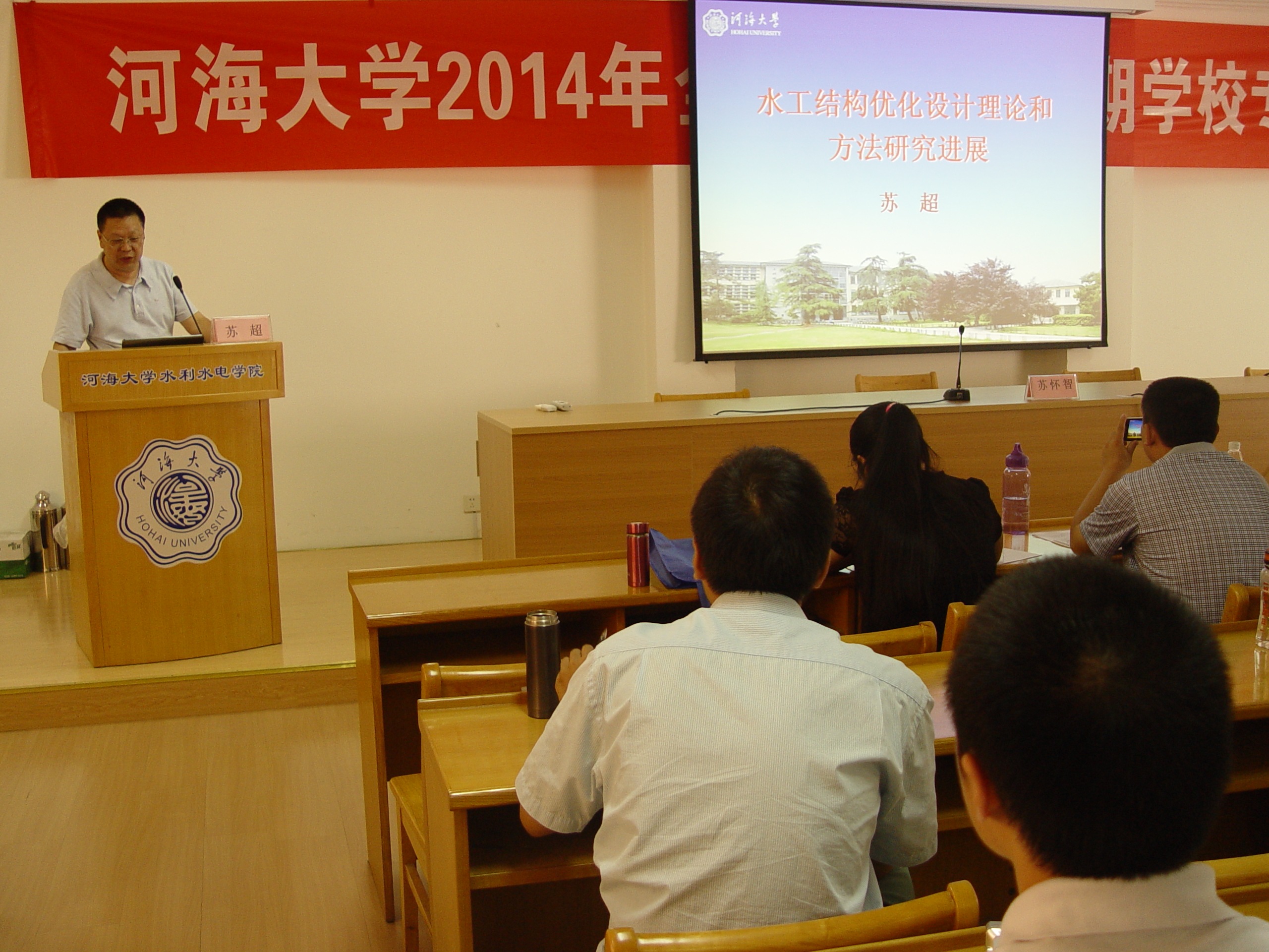 7月30日上午,av影片 水工结构研究所副所长苏超教授为各位学员作了题为《水工结构优化设计理论和方法研究进展》的报告,报告会由av影片 博士生导师苏怀智教授主持。