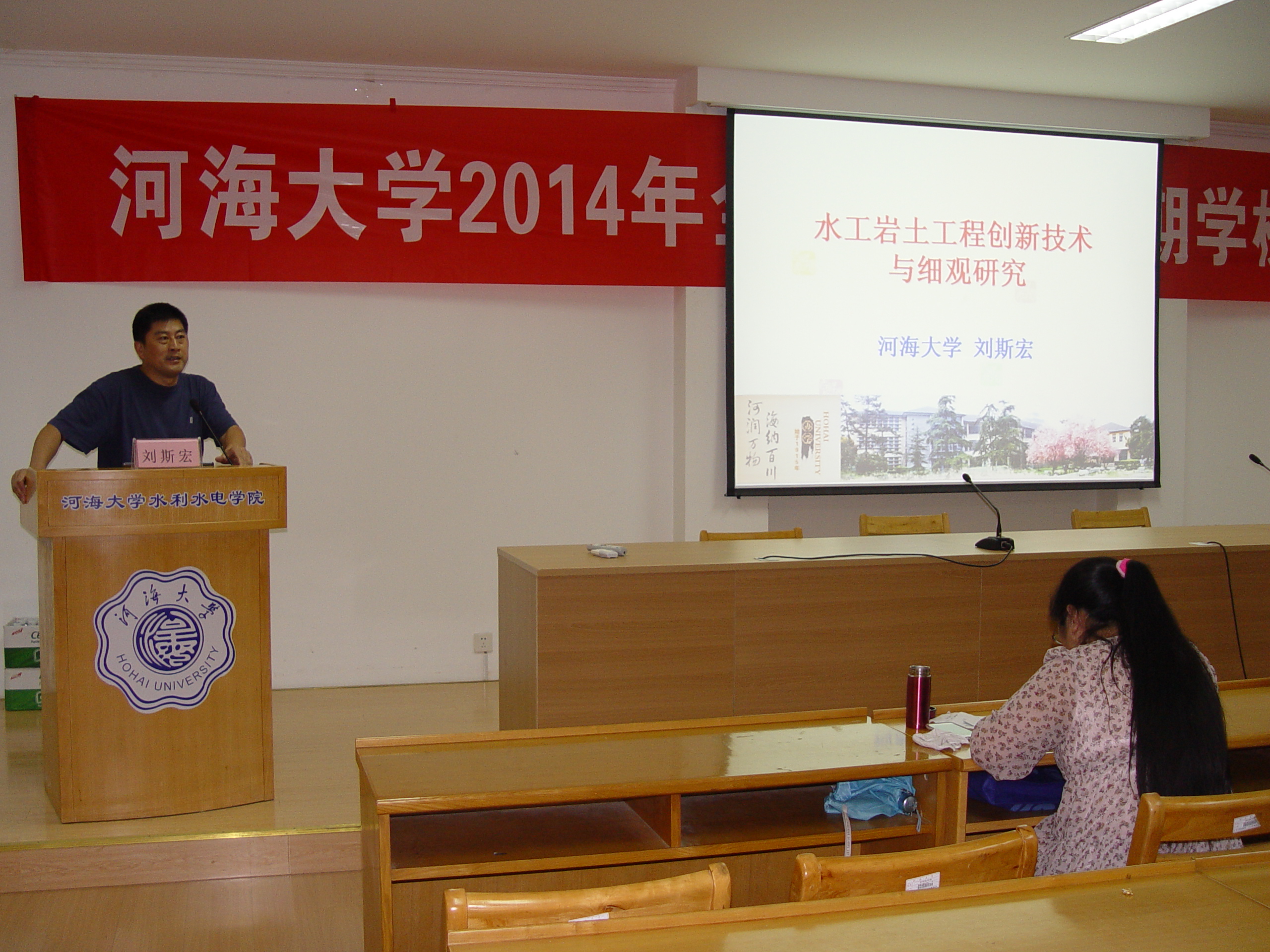 7月31日上午,av影片 水工结构研究所所长刘斯宏教授向学员们作了题为《水工岩土工程创新技术与细观研究》的报告,报告会由av影片 副院长沈振中教授主持。