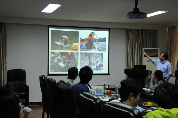 硕士研究生尹超对“微生物纳米球净化污水及水产养殖塘底泥”的相关研究作了介绍。日本国立岐阜大学李教授介绍了岐阜大学概况及所在科研团队的有关情况,并做了流域水环境方面的学术报告。双方师生针对水土环境修复和保护学术问题进行深入的交流探讨,李教授表示了进一步和av影片