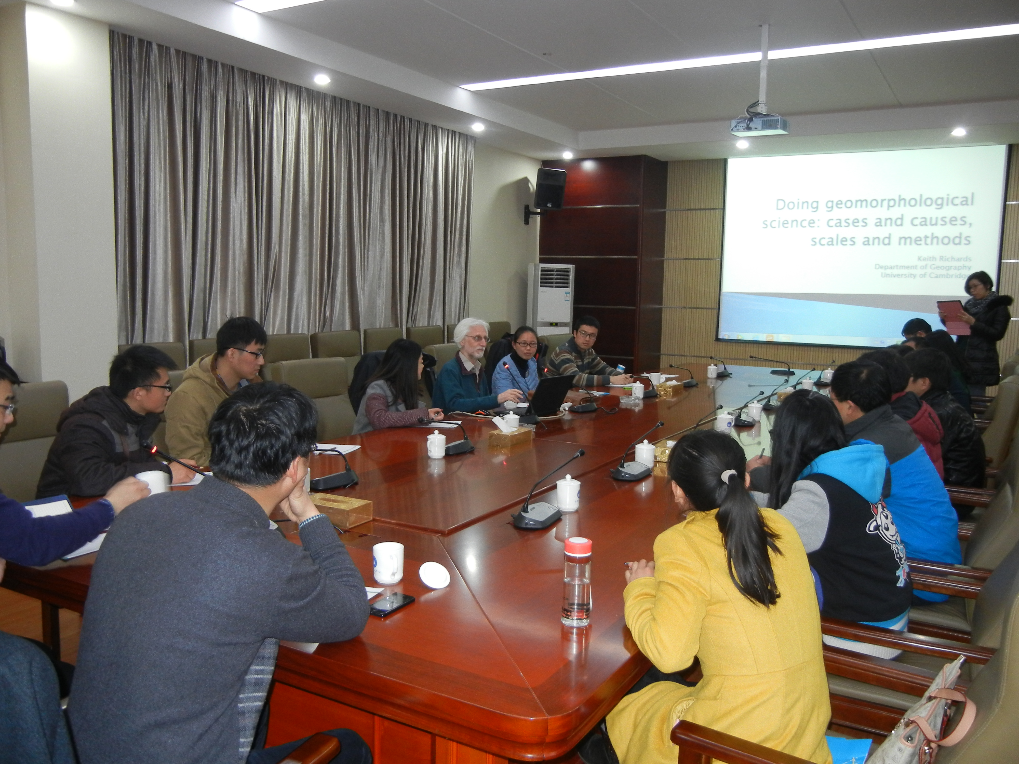 2016年2月24日至28日,英国剑桥大学地理系Keith Richards教授应av影片 肖洋副院长邀请,在袁赛瑜博士、张涛涛博士的陪同下,访问了av影片 合作基地鄱阳湖模型试验研究基地、江西水土保持科研创新基地、鄱阳湖水文生态监测研究基地。Keith Richards教授就赣江尾闾综合整治、鄱阳湖水文生态、城市暴雨洪水与污染物冲刷等问题与相关人员进行了深入交流和探讨。期间还做了题为“Case study: Motions of flow and sediment”的专题报告,并在专题报告中融入了其研究过的类似的湖泊河流的案例,其中“If the law says it’s a river - it’s a river !”、“ Flood events in a monsoonal climate in northern Thailand”等案例非常有趣且发人深思。此次交流会开阔了基地工作人员的视野,加强了av影片 与国际同行的交流与合作。