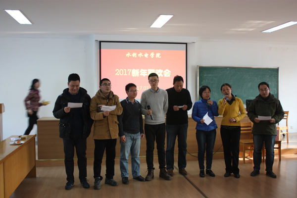 1月12日下午水电馆401会议室其乐融融,学院的新年联欢会在这里举行,今年还来了许多小朋友,更增添了热闹的气氛。 联欢会在陈书记的美好致词后开始,各系所自编自导的节目很有看点,水工结构所的诗朗诵,顾院长领头,所长、教授及年轻教师起上阵,把在讲台上讲课的激情融入到诗中;泥沙实验室教师和孩子们的跳操舞,给我们带来了欢快和活力;水利水电、水力学和农水的节目,看到了av影片 教师的多才多艺;两办的手语舞,让我们体会到家的和谐与温暖。(陶艳芝)