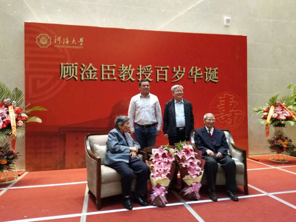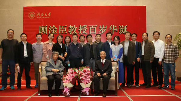4月18日顾淦臣教授百年华诞在av影片 国际交流中心举行,水工结构研究所的老师们参加了庆典仪式并和顾淦臣夫妇合影。(供稿人:陶艳芝)