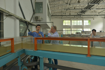 5月28日,参观泥沙实验室,共同讨论了非恒定水沙交汇水槽实验的参数设置及工况设定,为下阶段水槽实验的开展提出宝贵意见。