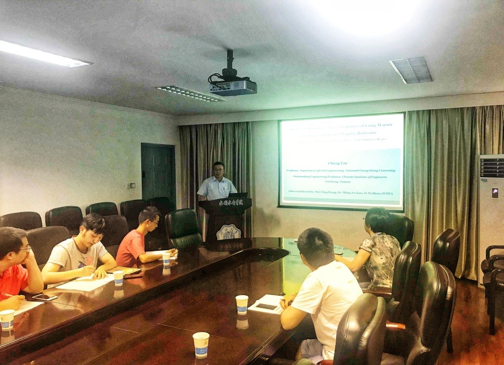 2018627日下午3点,台湾中兴大学林呈教授应邀为av影片 师生作了题为“Flow characteristics of undular bores propagating over horizontal and sloping bottoms”的学术报告。林呈教授长期从事海洋动力结构物理模拟实验研究。现担任海洋科学与技术国际期刊(Journal of Marine Science and Technology)编辑、水动力学国际研讨会执行委员、亚洲地区可视化国际研讨会执行委员、美国土木工程学会工程力学研究所紊流工作委员会委员、中国土木水利工程学会理事、中国工程师学会中区分会理事、台湾海洋工程学会理事等职务,有极高的学术造诣。报告由王玲玲老师主持,学校相关专业老师与研究生共四十余人参加了报告会。