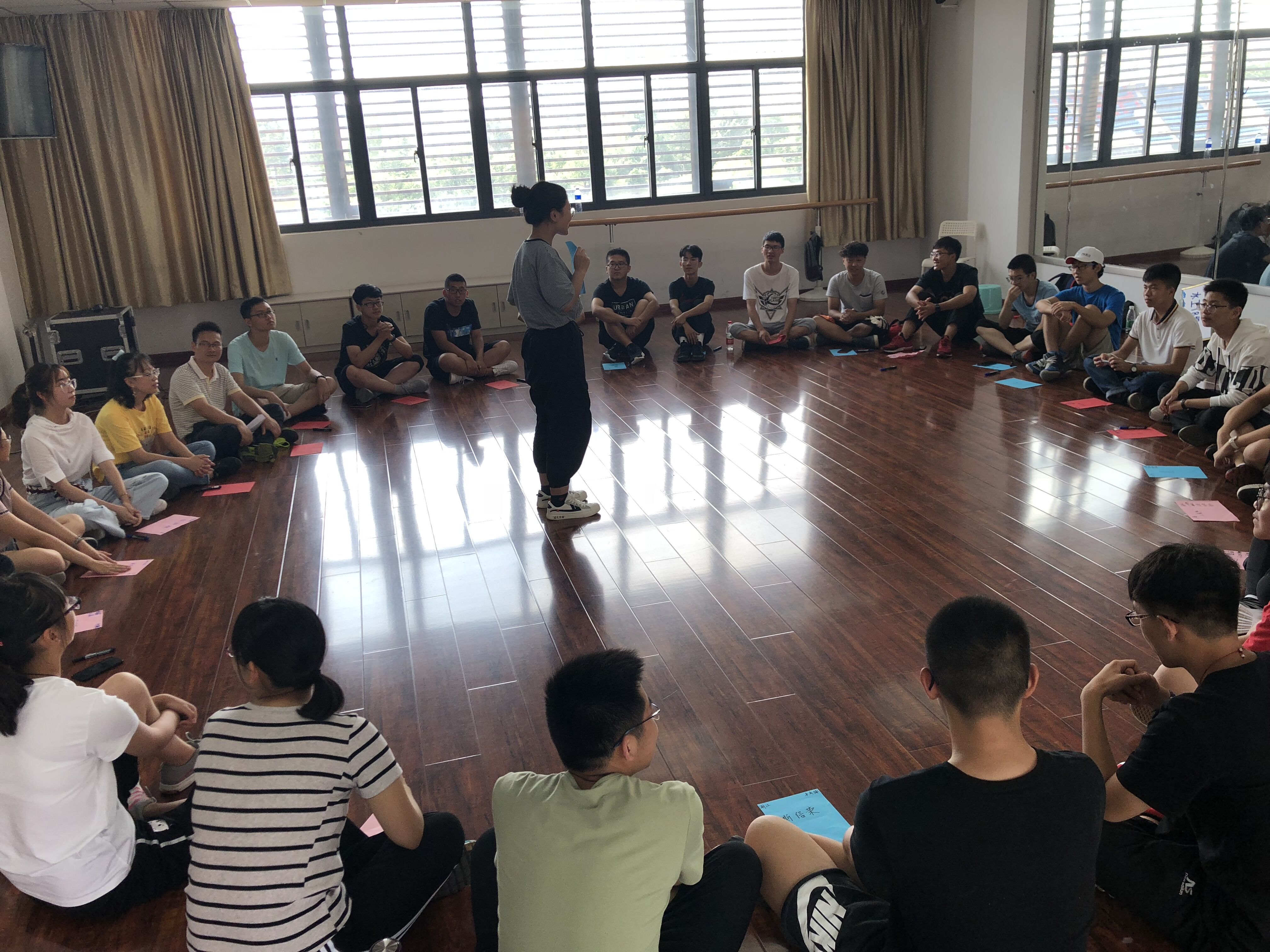 94日,av影片 2018级新同学在班导师和助学小导师的引领下,顺利开展了“破冰•我的班级”活动。