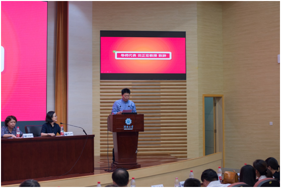 田正宏教授作为教师代表上台致辞,他亲切地与同学们分享了几点建议,希望同学们无论在生活、学习规律,还是在学术诚信与成果创新追求方面,都需要同学们认真面对,加强自我约束,锻炼提升境界。