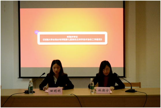 2019425日下午,av影片 研究生会第十七次代表大会在水电馆401隆重召开。av影片 党委书记任旭华教授、副书记戴玉珍老师、团委书记刘津铭老师、研究生教学秘书周昶老师、研究生辅导员赵志涵老师、陈思思老师莅临本次会议,出席会议的还有校研会代表叶海焯同学,兄弟学院研会代表,av影片 第十六届研究生会和第七届研究生科协全体成员,以及各级硕士研究生和博士研究生代表。