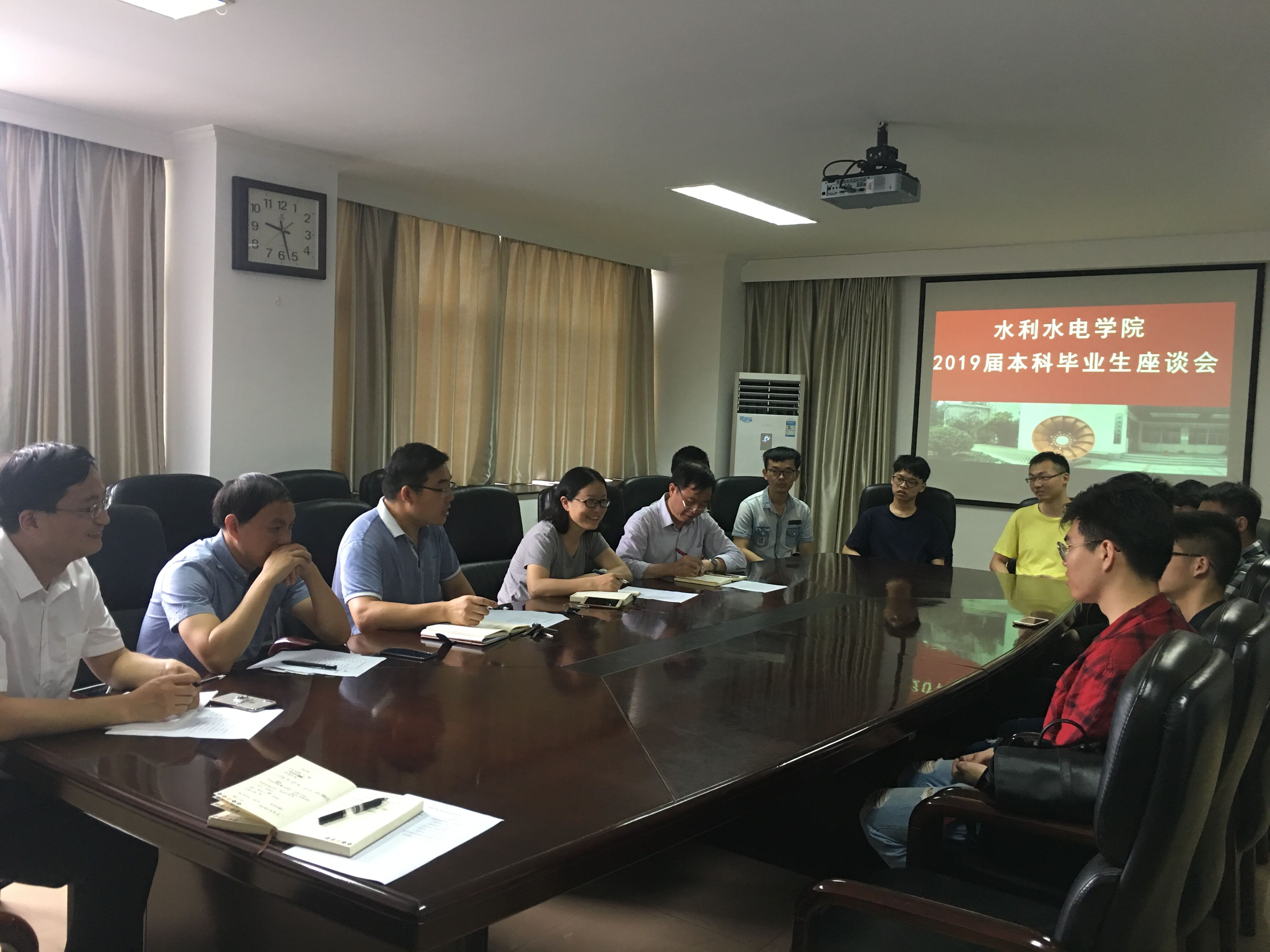 618日,av影片 举行2019届本科毕业生代表座谈会。会议由学院党委副书记戴玉珍主持,学院副院长张继勋、水电系主任蔡付林、副主任岑威钧、专业办主任徐磊,1516级辅导员和2019届本科毕业生代表参会。