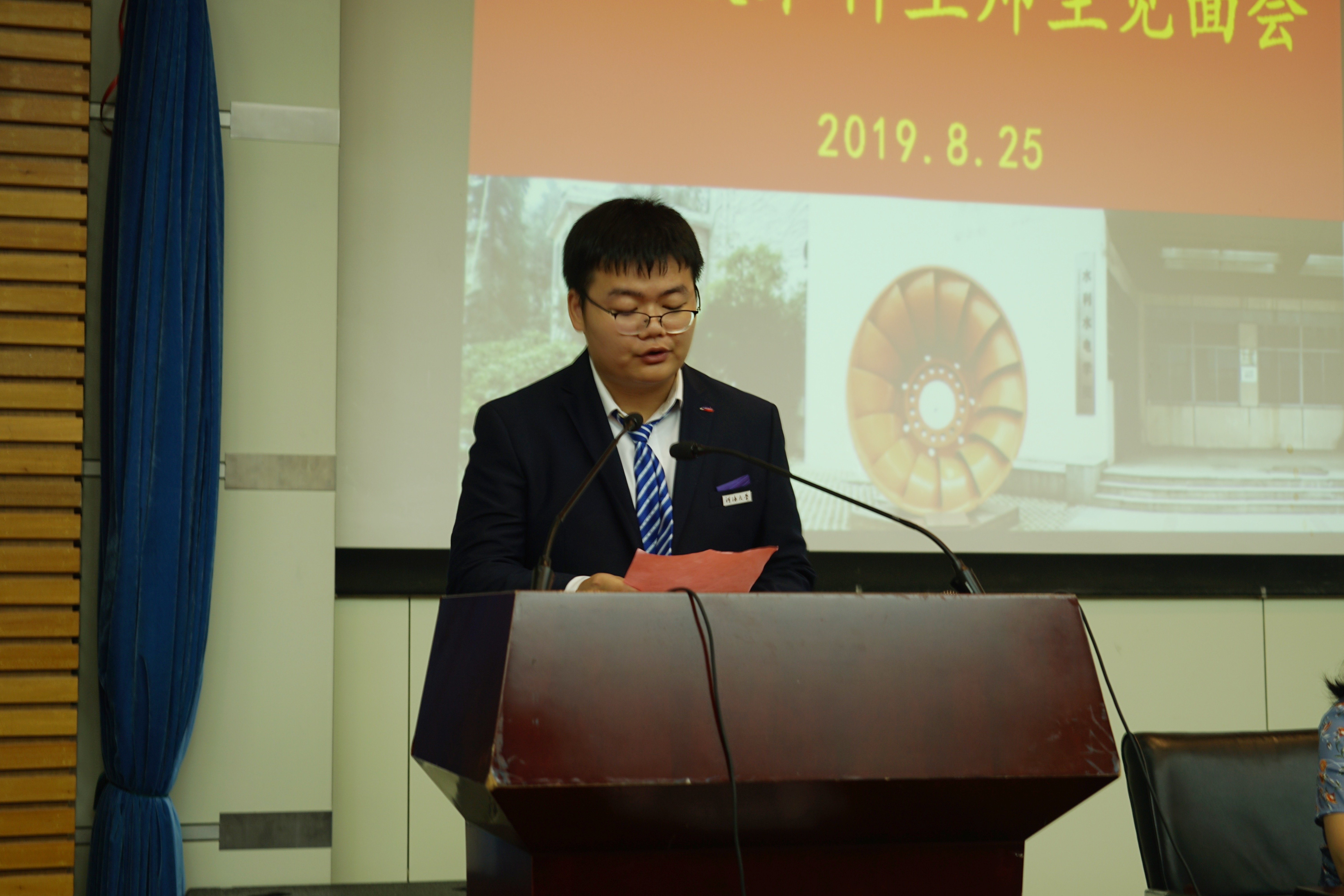顾冲时院长在致辞和开学第一讲中,代表全院师生员工向2019级新同学表示热烈的欢迎和衷心的祝贺。他从学院历史、师资队伍、学科设置、机构设置、重要科研成果和人才培养及就业六个方面,介绍了学院丰硕的办学成果、雄厚的科研实力和优质的校友资源,引用优秀校友的经历剖析本科生发展于就业的深刻影响,他要求同学们应以远大理想确立人生航向,以高尚品德践行水利精神,以过硬本领担当时代责任,以青春之我、奋斗之我去勇敢追逐心中五彩斑斓的梦想。