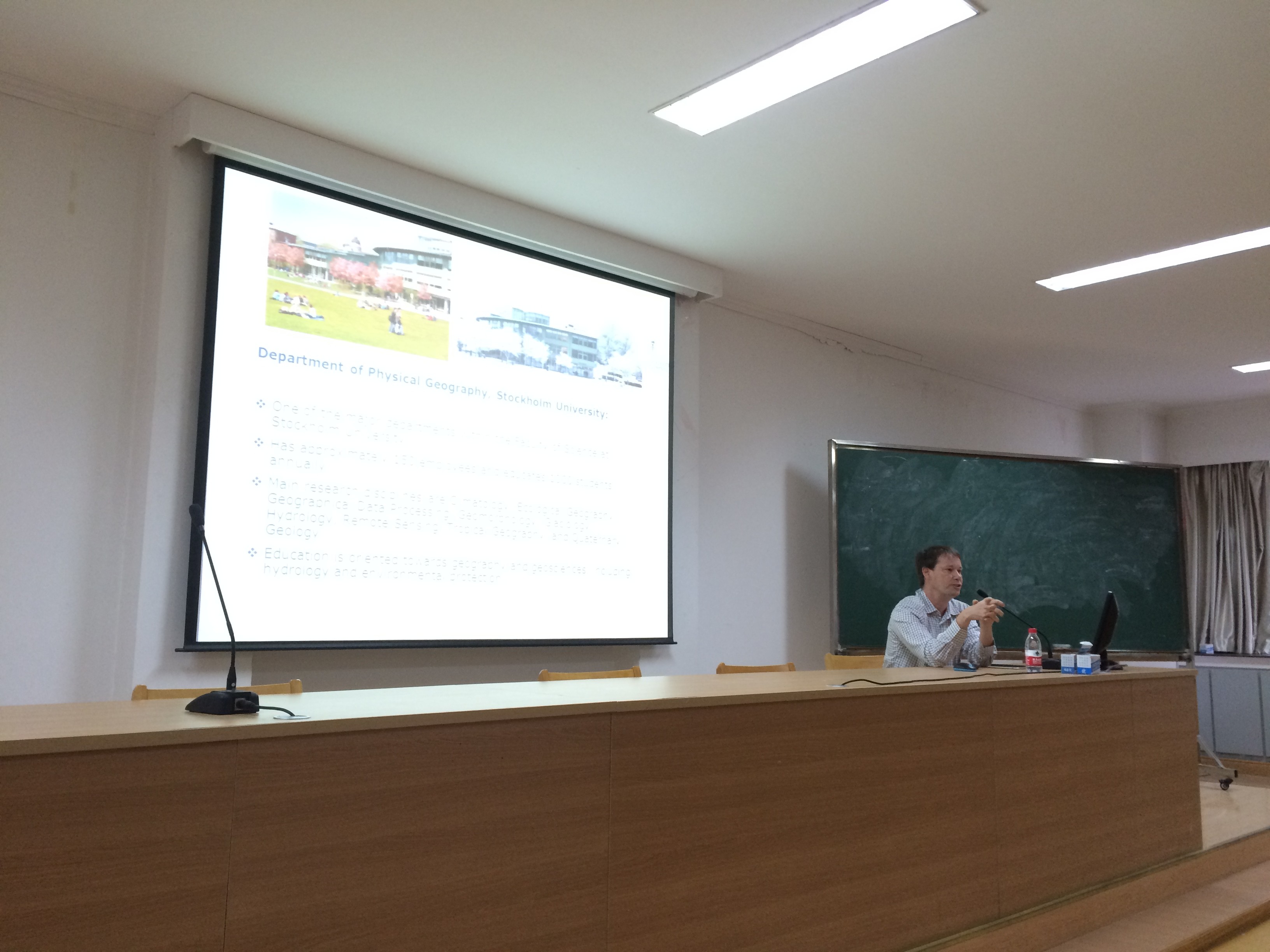 报告会上,Jerker Jarsjö教授针对全球变化和水资源问题,详细介绍了关于气候变化和土地利用变化的影响,也结合咸海流域水资源的极端案例和波罗的海流域的富营养化问题,利用理论分析、数值模拟等研究方法和思路进行了深入浅出的讲解,同时也全面阐述了如何利用湿地或湿地景观减轻全球变化主要是气候变化和土地利用变化的影响。会后,在场师生针对全球变化的研究和应用与Jerker Jarsjö教授进行了深入的交流。
