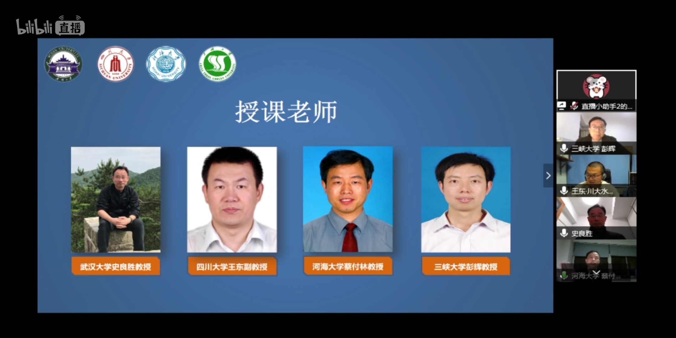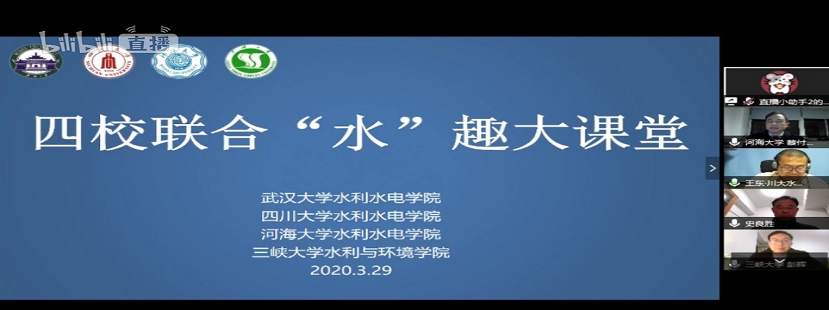 3月29日,在第三十三届“中国水周”期间,av影片 、武汉大学av影片 、四川大学av影片 、三峡大学水利与环境学院4所水利院校共同打造“水趣大课堂”,通过B站直播邀请全国水利类高校大学生同上一节水利“云”课堂。av影片 蔡付林教授、武汉大学史良胜教授、四川大学王东副教授和三峡大学彭辉教授开讲。