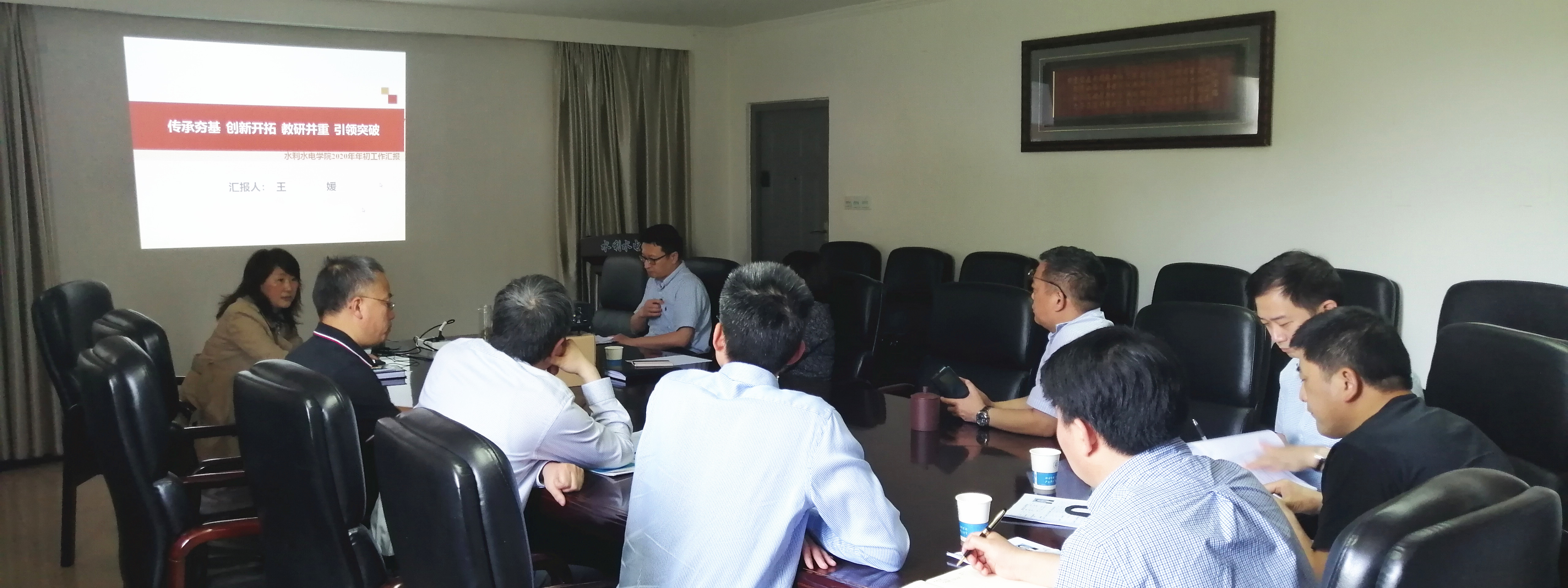 王媛院长做了题为《传承夯基 创新开拓 教研并重 引领突破》的报告,针对学院基本情况、发展态势、发展定位和发展思路四个方面详细分析,指出学院要面向新时期国家重大发展战略需求、跟踪国际前沿科学研究,完善与优化学科布局,凝练学科方向,深入思考师资队伍,构建学科人才梯队建设。
