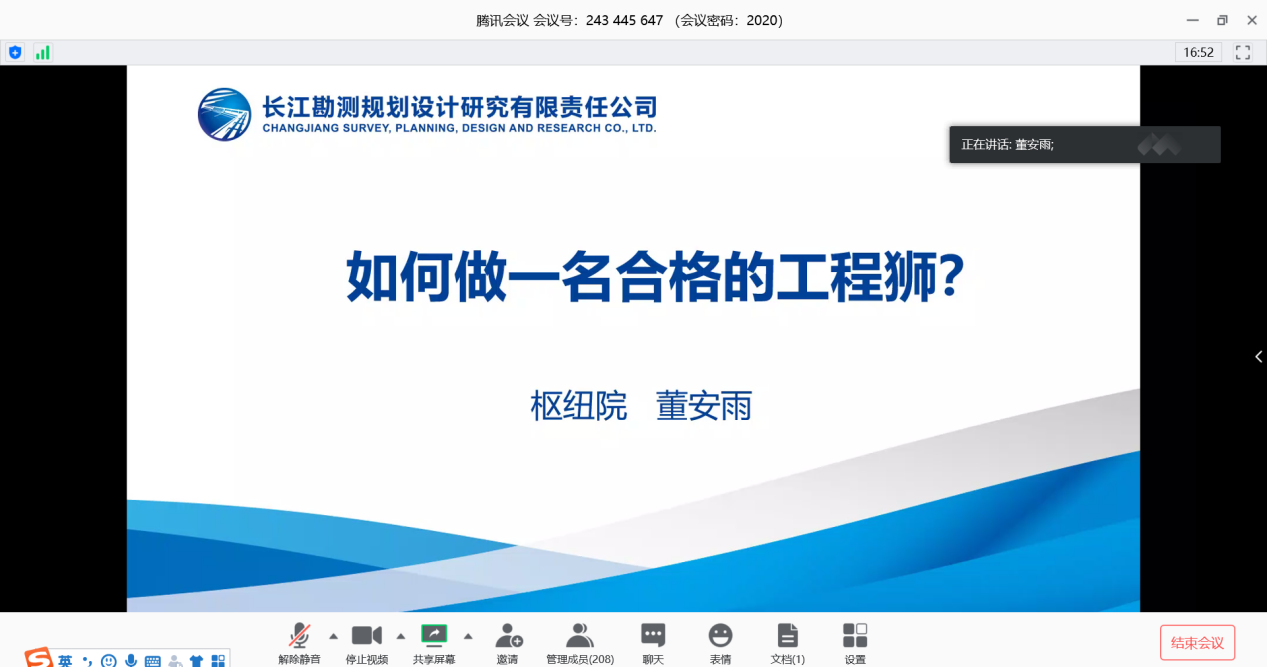 校友董安雨以《如何做一名合格的工程师》为主题,首先对水利水电工程的就业方向进行介绍,并且将设计院的方向作为主线,介绍了工程师的日常。董安雨校友特别提到在工作上前期是一个打基础的阶段,要调整好心态,还需要保持高度的学习热情。随着市场饱和,设计院更需要“一专多能”的人才,此外除却传统工程师本行业发展方向还有BIM设计师、市场经营人才等。