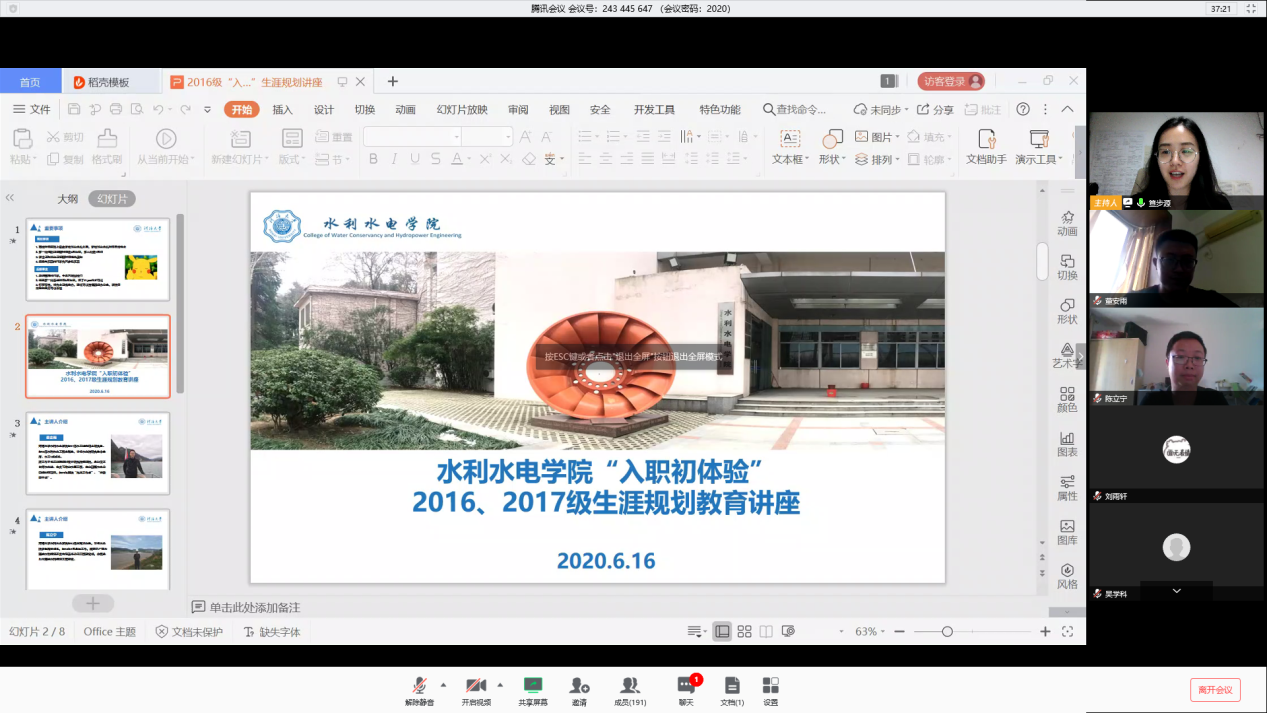 6月16日,av影片 举办“入职初体验”生涯规划教育讲座,2016级、2017级全体学生参加讲座。讲座邀请av影片 2017届研究生校友、长江勘测规划设计研究院枢纽院董安雨,2015届本科生校友、广西大藤峡水利枢纽开发有限责任公司工程建设部陈立宁主讲。2016级辅导员笪步源主持讲座。
