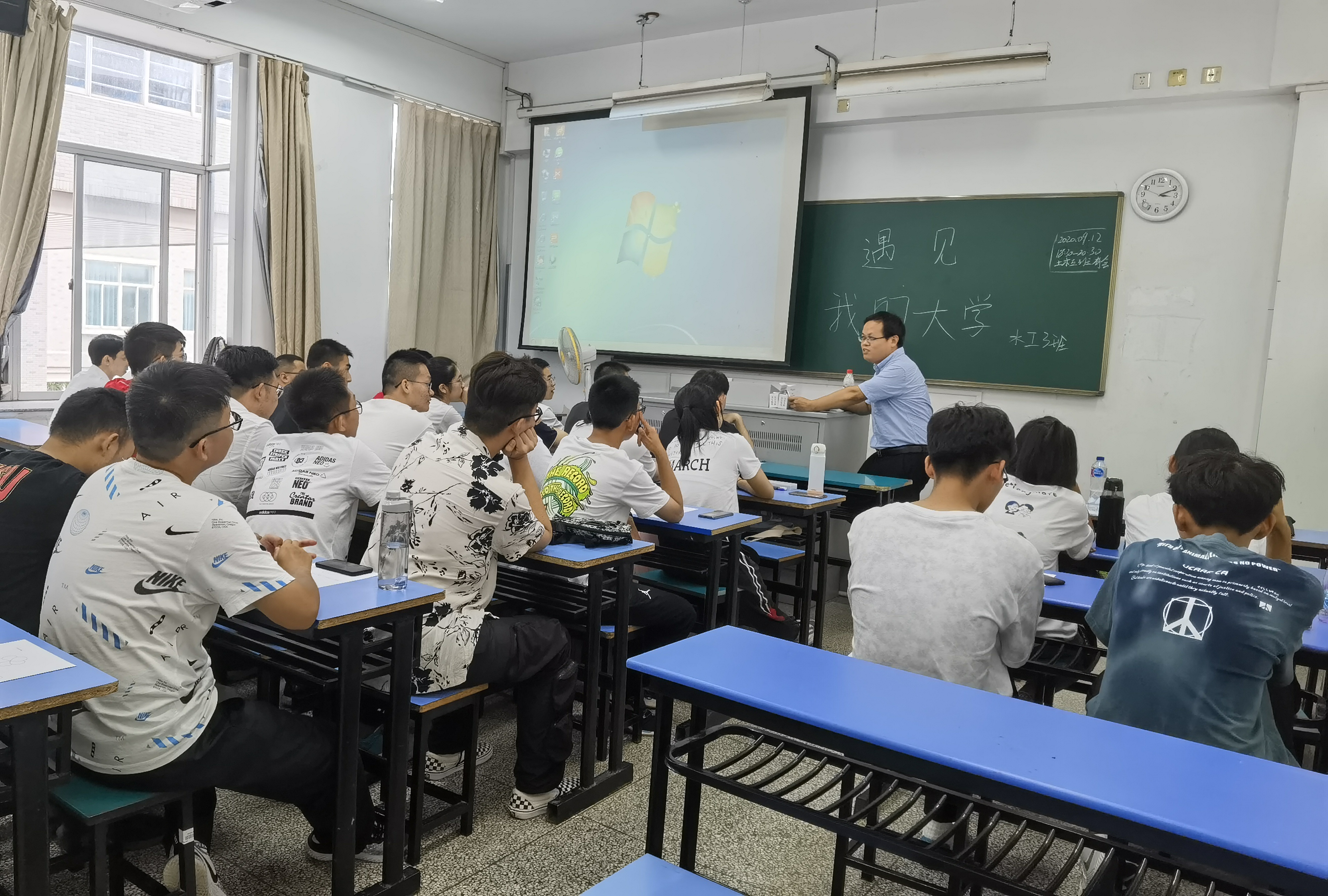9月12日-9月15日,av影片 2020级本科新生在班导师的引领下,开展了“遇见·我的大学”和“畅谈·我的大学”主题班会活动。班导师贺蔚、闫静、赵二峰、马飞、周兰庭分别主持各班班会。
