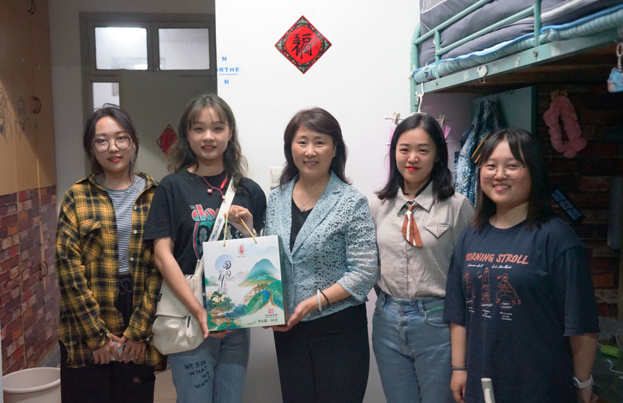 9月29日,学院党委书记任旭华、院长王媛、党委副书记王方来到江宁校区学生宿舍,看望2020级本科新同学,为大家送上中秋月饼和学院的节日问候。2020级辅导员笪步源、2019级辅导员帅雨婷陪同走访。