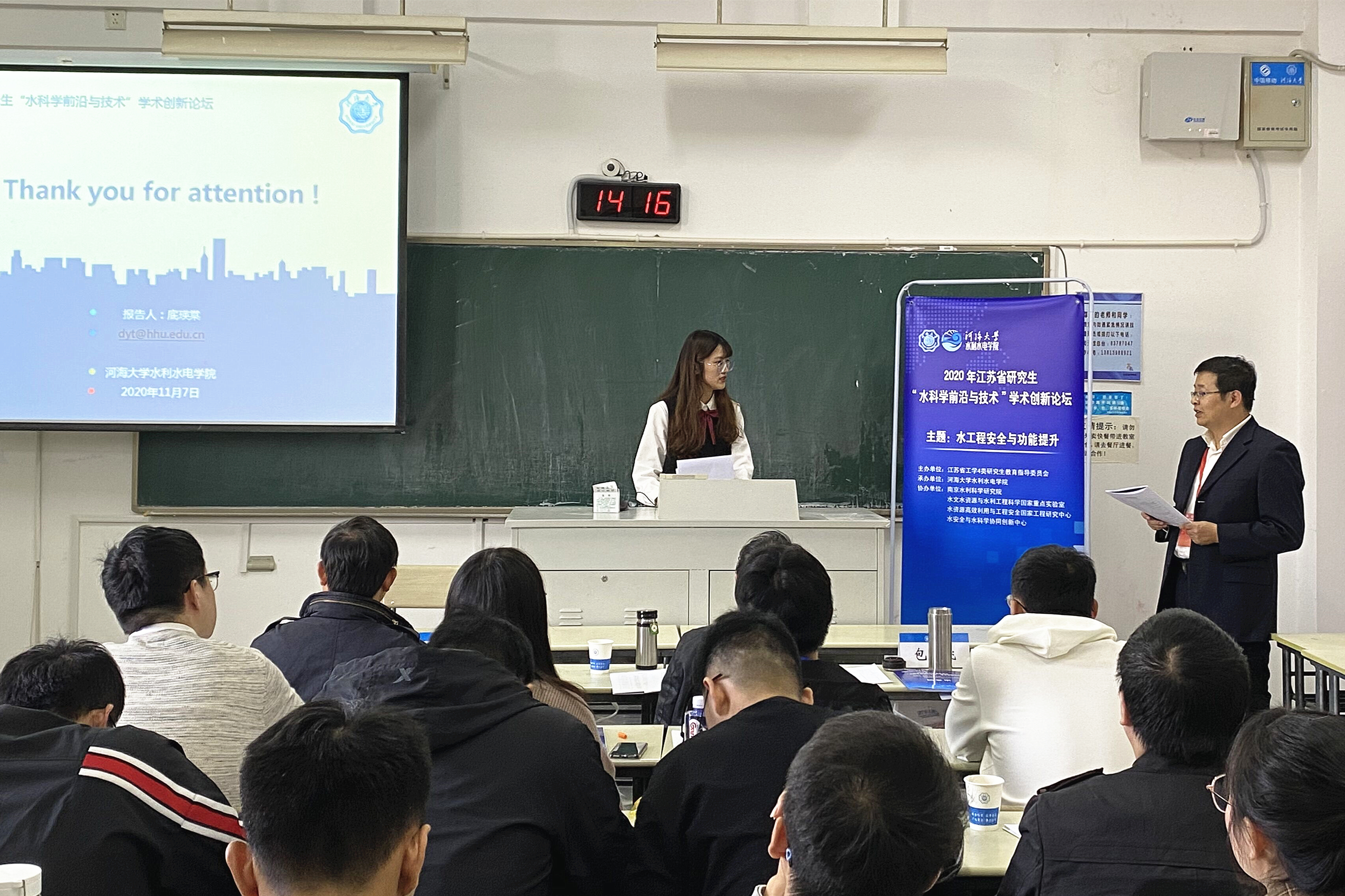11月7-8日,av影片 成功举办2020年江苏省研究生“水科学前沿与技术”学术创新论坛。7日上午,论坛开幕式在av影片 科学会堂三楼报告厅隆重举行,av影片 常务副校长李俊杰,南京水利科学研究院副院长李云,av影片 研究生院常务副院长华祖林,av影片 院长王媛,av影片 研究生院副院长苏怀智,av影片 副院长方国华、党委副书记王方等出席了开幕式。中国长江三峡集团有限公司戴会超教授、清华大学水利水电工程系王进廷教授、南京水利科学研究院陈求稳研究员、上海交通大学土木工程系张璐璐教授、av影片 陈波青年教授等五位特邀报告专家出席开幕式并做特邀报告。av影片 院长助理包腾飞教授、水利水电工程研究所所长周建旭教授、水工结构研究所所长岑威钧教授、水力学及河流研究所副所长罗玉龙教授等四位分论坛主席,av影片 毛劲乔、李晓英、程井、曾诚等会场报告点评专家代表出席开幕式。开幕式由av影片 副院长方国华主持。