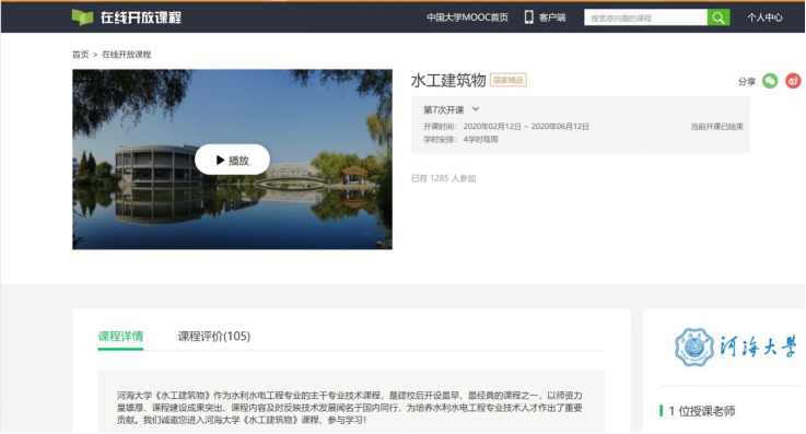 近日,教育部公布了首批国家级一流本科课程认定结果名单,av影片 3门课程入选,顾冲时教授负责的“水工建筑物”、胡明教授负责的“走进水利”入选一流线上课程(原国家精品在线开放课程),刘晓青教授负责的“水工建筑物”入选线上线下混合式一流课程。