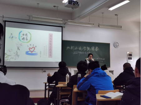 团委副书记谷冰岚从思政教育、素质拓展、社会实践、校园文化、社团活动五个方面进行团委的工作总结,提出了新的要求,并对水电院团委的每位成员表示的关心和祝福。