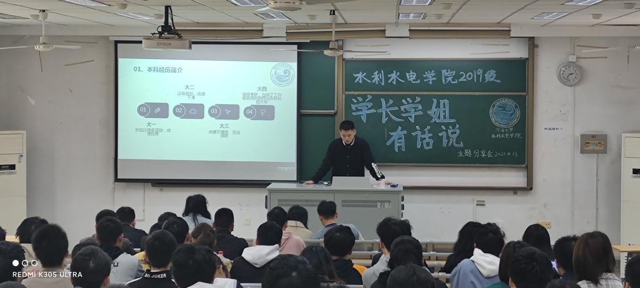 2021年4月13日下午,av影片 2019级本科生举办了“学长学姐有话说”学风建设主题分享会,邀请2017级优秀的学长学姐温家宣、闫致远、李柯雅分享学习经验、发展路径,2019级全体同学参与,辅导员帅雨婷出席。