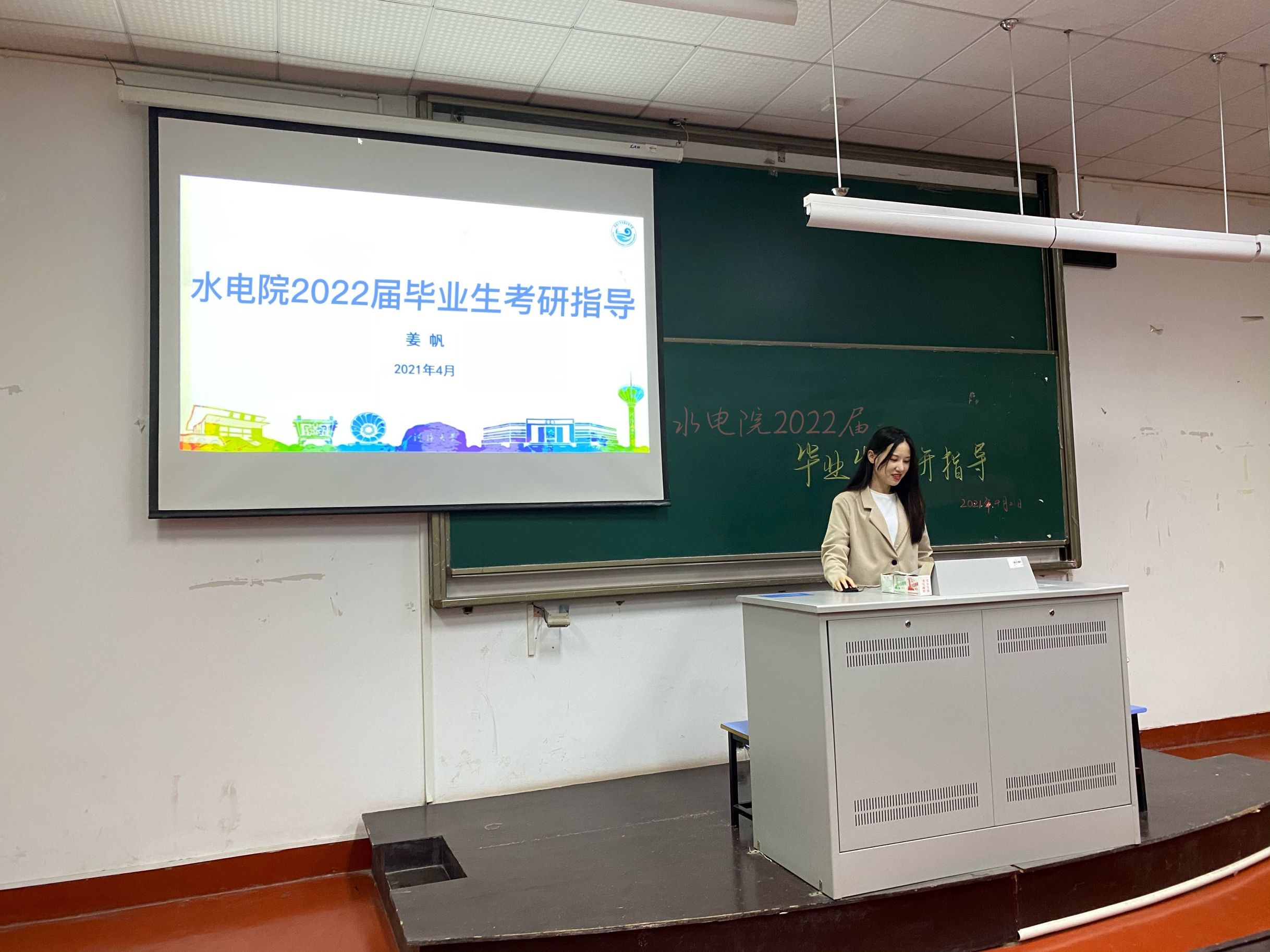 4月21日晚,av影片 召开水电院2022届毕业生考研指导会,会议由水电院2018级本科生辅导员姜帆老师主持,2017级本科生刘雪娇、李新、温家宣和张树立分享,水电院2018级全体本科生参会,学生家长在线上会议同步参与。