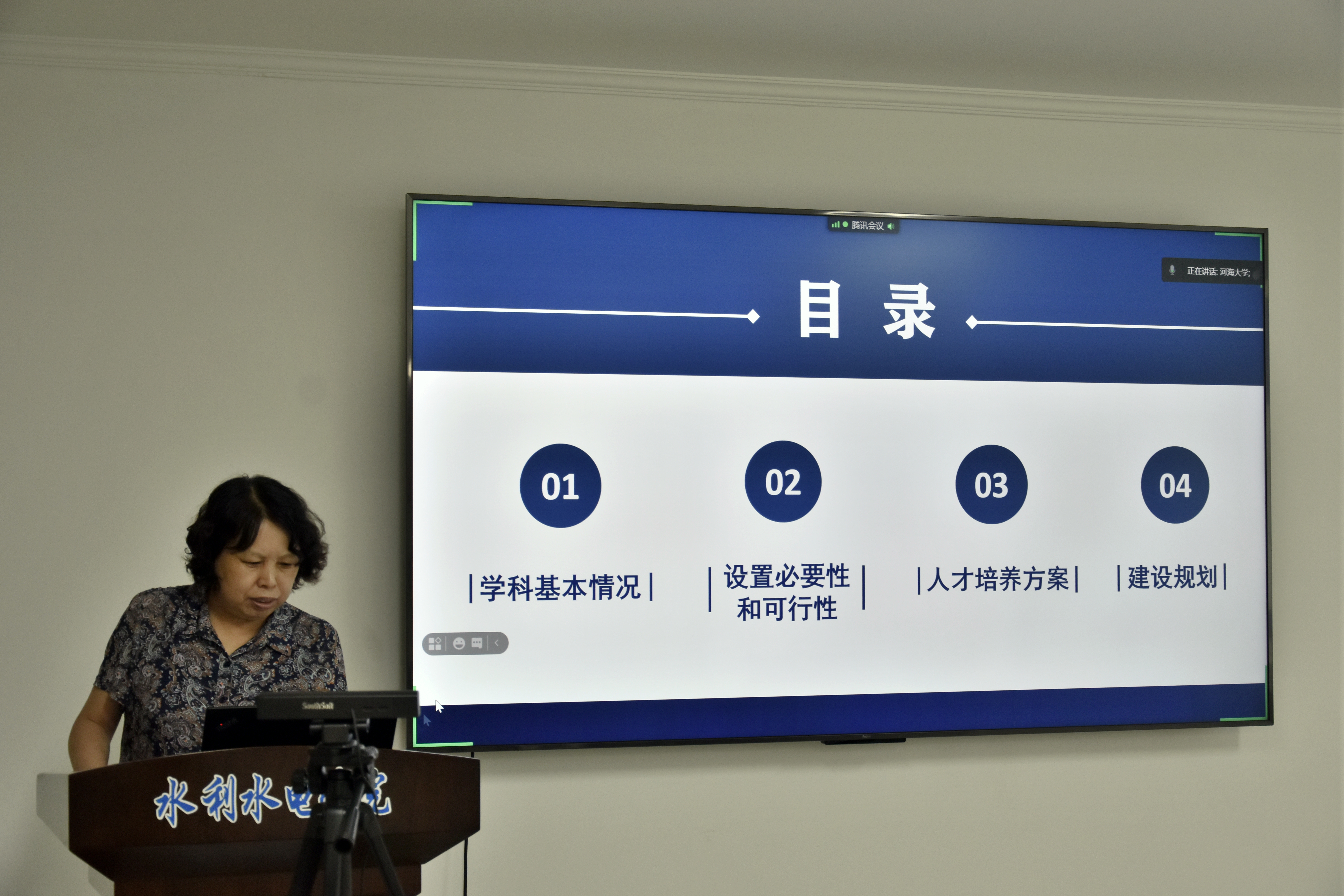 方国华向与会专家汇报水安全与应急管理学科论证报告,从学科基本情况、设置必要性和可行性、人才培养方案、建设规划四个方面进行了汇报,详细介绍了我校设置该学科已具备的师资、教学、科研和平台基础,并表示将充分利用学校现有各类教学科研平台、发挥共享协同作用,对水安全应急管理交叉学科建设与发展提供全方位支持。