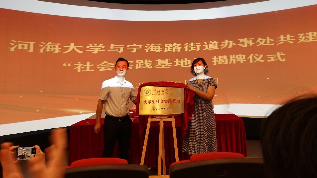双方代表进行“社会实践基地”签约和揭牌仪式。未来,将通过院校与街道的系列活动,进一步加强校街联系,实现资源共享,为大学生提供认识实践、贡献社会和自我成长平台的同时,助力宁海路街道环境治理、文明建设和群众帮扶。