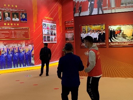 根据当天场馆需求,支部党员提前到岗,接受培训,到位上岗。展览正式开始后,游客们纷纷入馆,支部党员们积极主动地为遇到困难的群众提供帮助,高效地完成了馆内参展引导、维持现场秩序、讲解党史相关知识、外场秩序引导、爱心帮扶等各项工作任务,充分展现了党员先锋模范作用和全心全意为人民服务的理念追求。