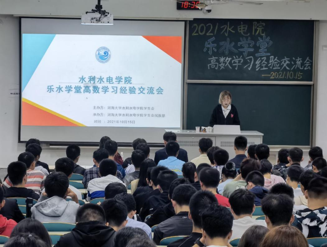 10月15日,av影片 举办“乐水学堂高数学习经验交流会”活动,2020级本科生王姝文、陈斐仰、侯永驰、张印四位同学担任主讲人,2021级辅导员侯开智、2021级全体本科生参加。