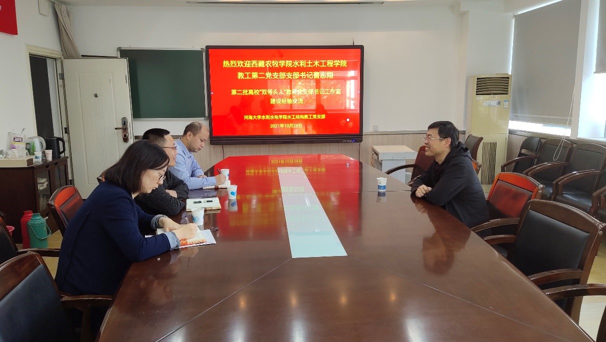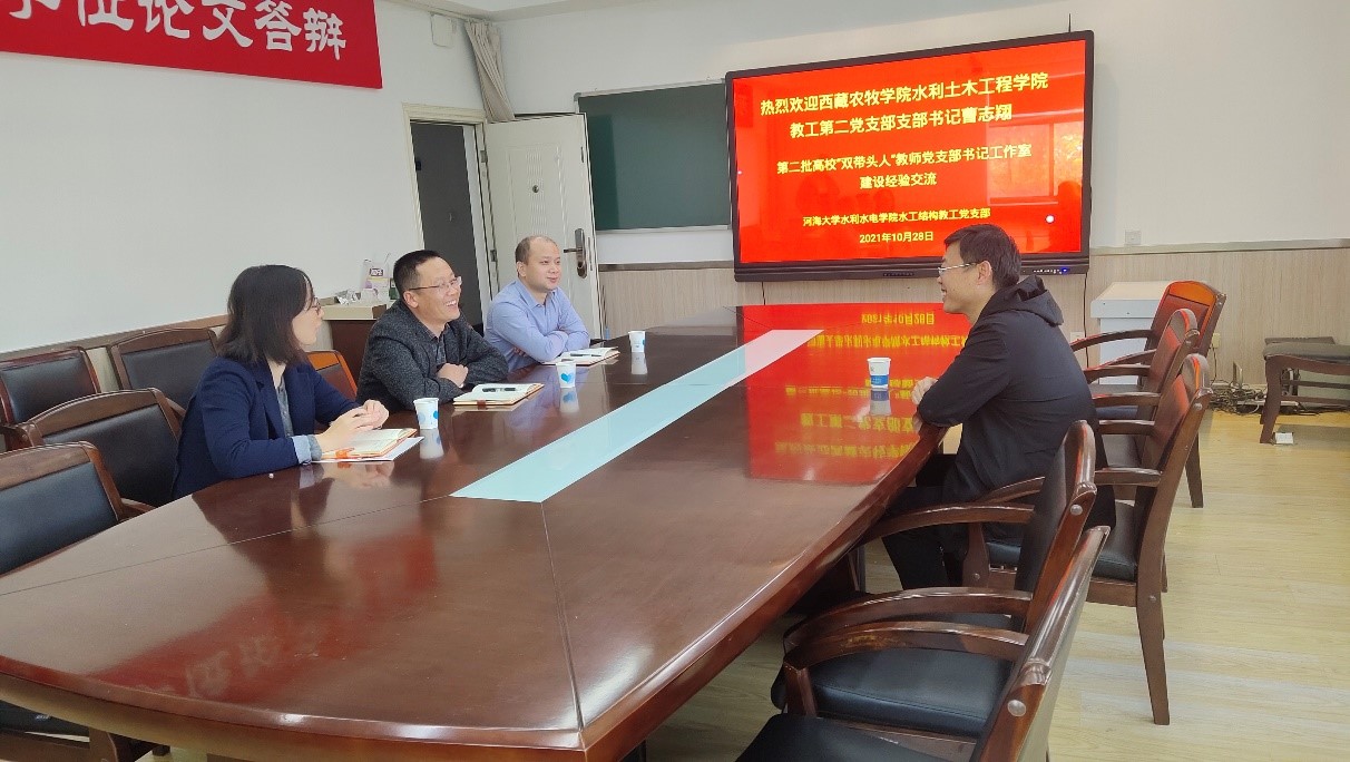 10月28日,av影片 水工结构研究所教师党支部与西藏农牧学院水利土木工程学院第二教师党支部开展结对共建。西藏农牧学院土木水利学院第二教师党支部书记曹志翔,av影片 水工所党支部书记赵兰浩、组织委员甘磊、宣传委员张汉云参加会议。
