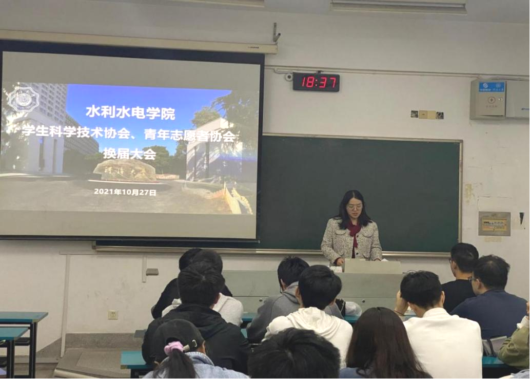 10月27日,水利水电学院学生科学技术协会、青年志愿者协会换届大会在致高楼A203顺利召开。av影片 团委书记笪步源,学生科协、青协2019级成员,2020级主席团候选人及学生代表参加此次大会,会议由笪步源主持。