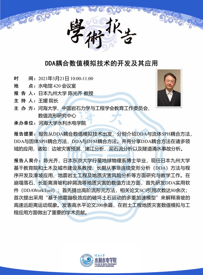 智水大讲堂 | 2021年(第二期)日本九州大学陈光齐教授学术报告