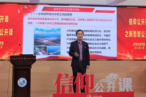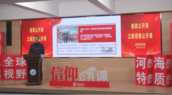 11月16日,av影片 举行“百年治水路中的传承与使命”信仰公开课之新思想公开课。课程以“党领导中国水利事业的历史经验与启示”为主题,院党委书记娄健、党委副书记王方和团委书记笪步源主讲,2019级硕士生金子又主持。本次新思想公开课为校级“信仰公开课”示范课。