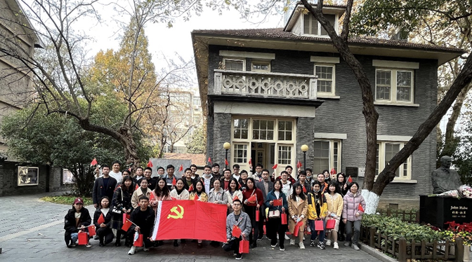 下午一时,支部来到位于南京大学拉贝与国际安全区纪念馆(拉贝故居)进行参观,支部成员王沁怡负责为大家讲解。拉贝故居因抗日战争南京大屠杀时期约翰·拉贝先生为善良与苦难的中国人民建立难民收容所而闻名。整个故居氛围庄重,真实记录了日军在南京大屠杀中的暴行,故居中的点滴记忆保留了新时代中德两国之间良好的文化交流,也向支部党员展示了拉贝先生伟大的人性光辉和无私的人类之爱。