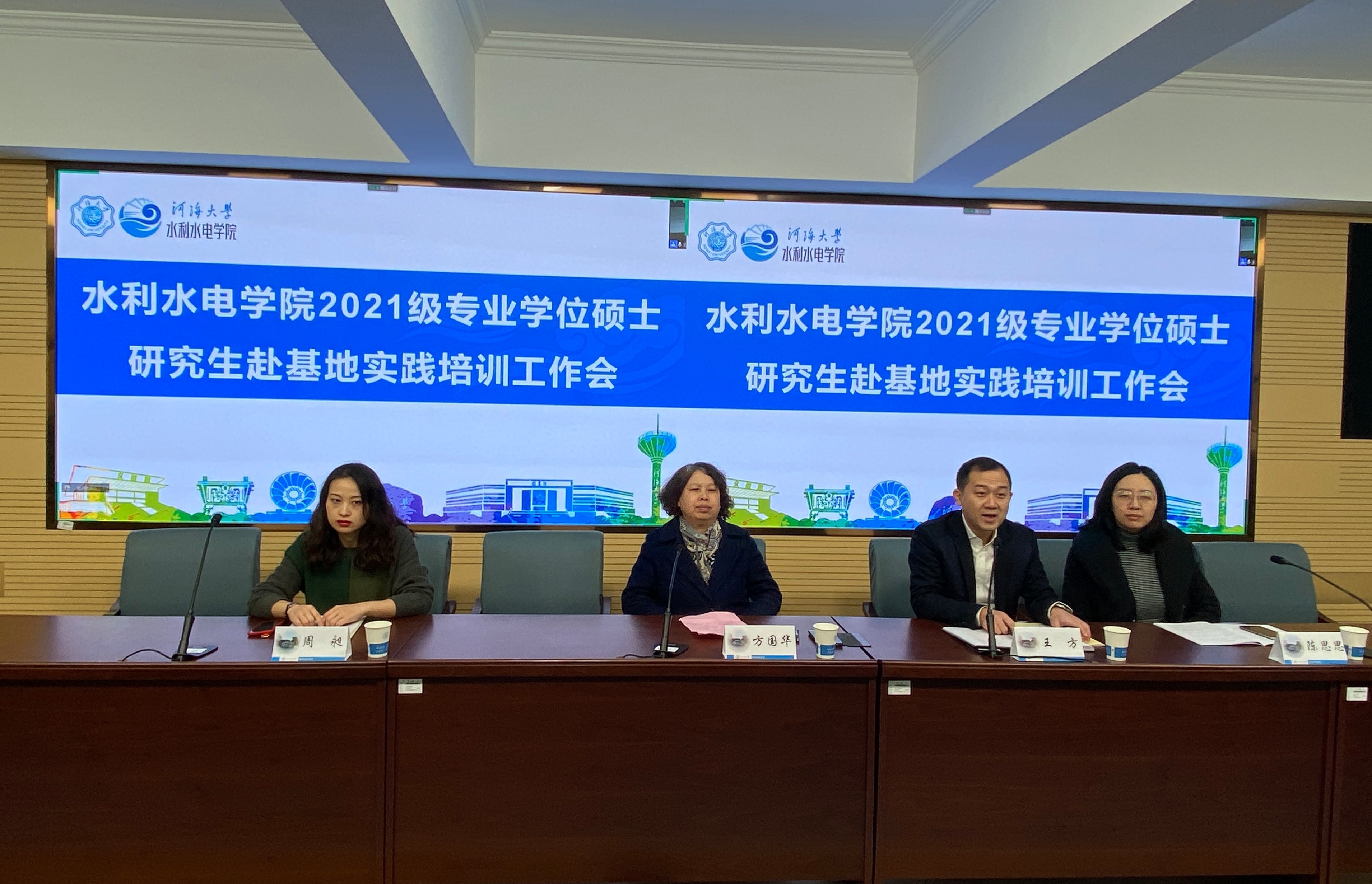 1月11日,av影片 召开2021级专业学位硕士研究生赴基地实践培训会,副院长方国华、党委副书记王方、教学秘书周昶、研究生辅导员陈思思及2021级专业硕士研究生在线上线下参加此次培训工作会。会议由王方副书记主持。