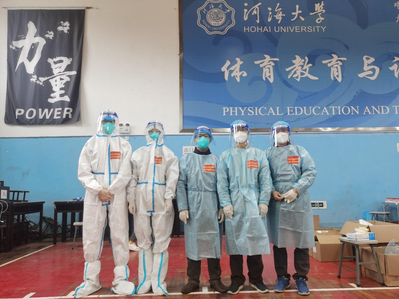 3月24日,在西康路校区篮球馆全员核酸检测工作现场,朱粤东、毛劲乔、金光球、胡瑞媛、井淼等五位昔日站在讲台上的老师们全副武装,身着白色防护服,负责扫码登记、录入信息、秩序维持,各项工作有条不紊。“同学你好,请有序排队!”“您好,请这边扫码”……虽然很多老师浑身被汗水湿透,但是没有一位老师叫苦叫累。