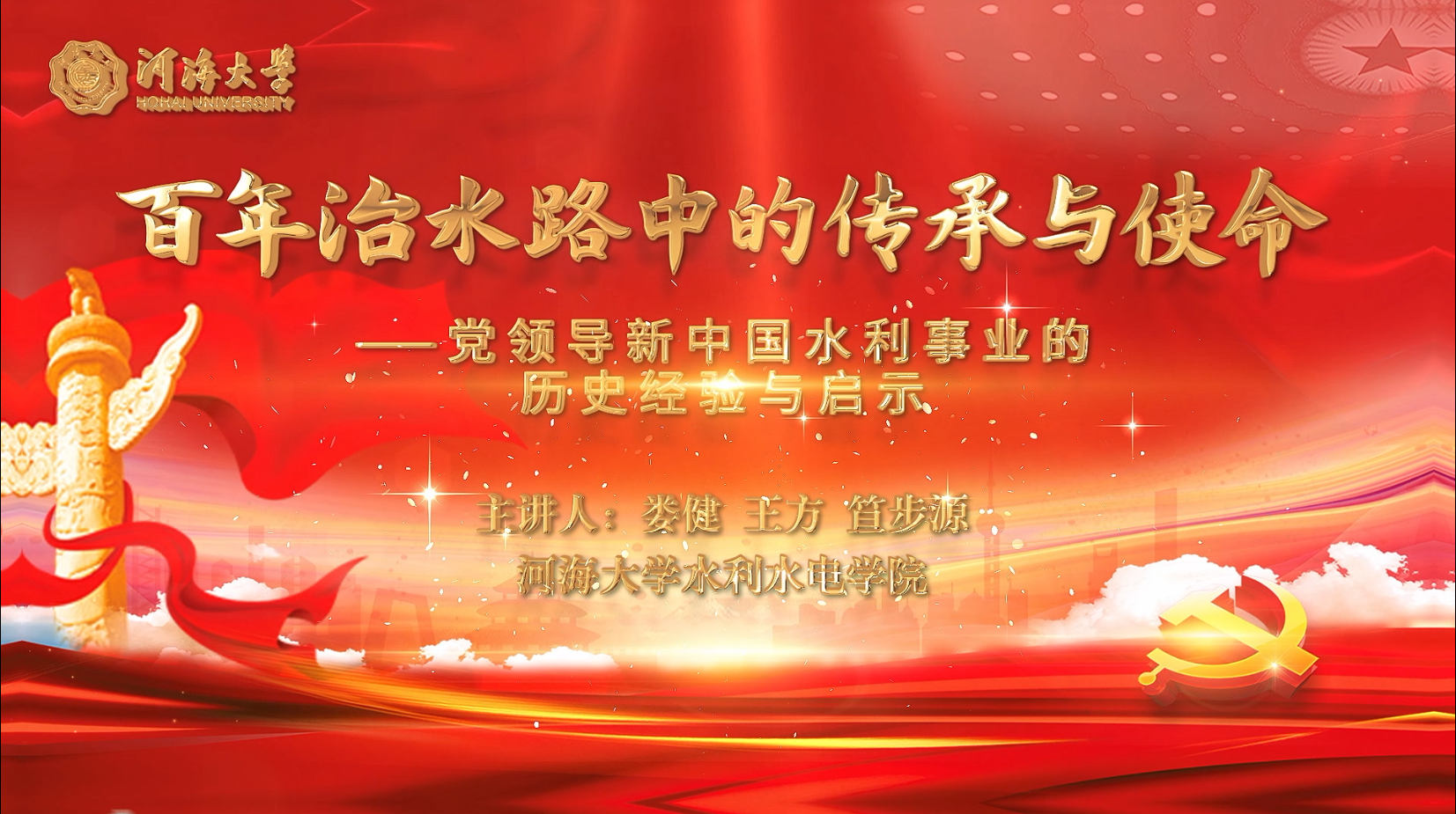 《思党史,百年治水路中的传承与使命》信仰公开课以“党领导中国水利事业的历史经验与启示”为主题,由学院党委书记娄健、党委副书记王方和团委书记笪步源主讲。三位主讲人分别代表“70后”、“80后”和“90后”水利人,从“党领导下水利事业的辉煌成就”、“党领导下治水的基本经验”、“党领导下新时代水利人的使命担当”等三个部分进行讲述。