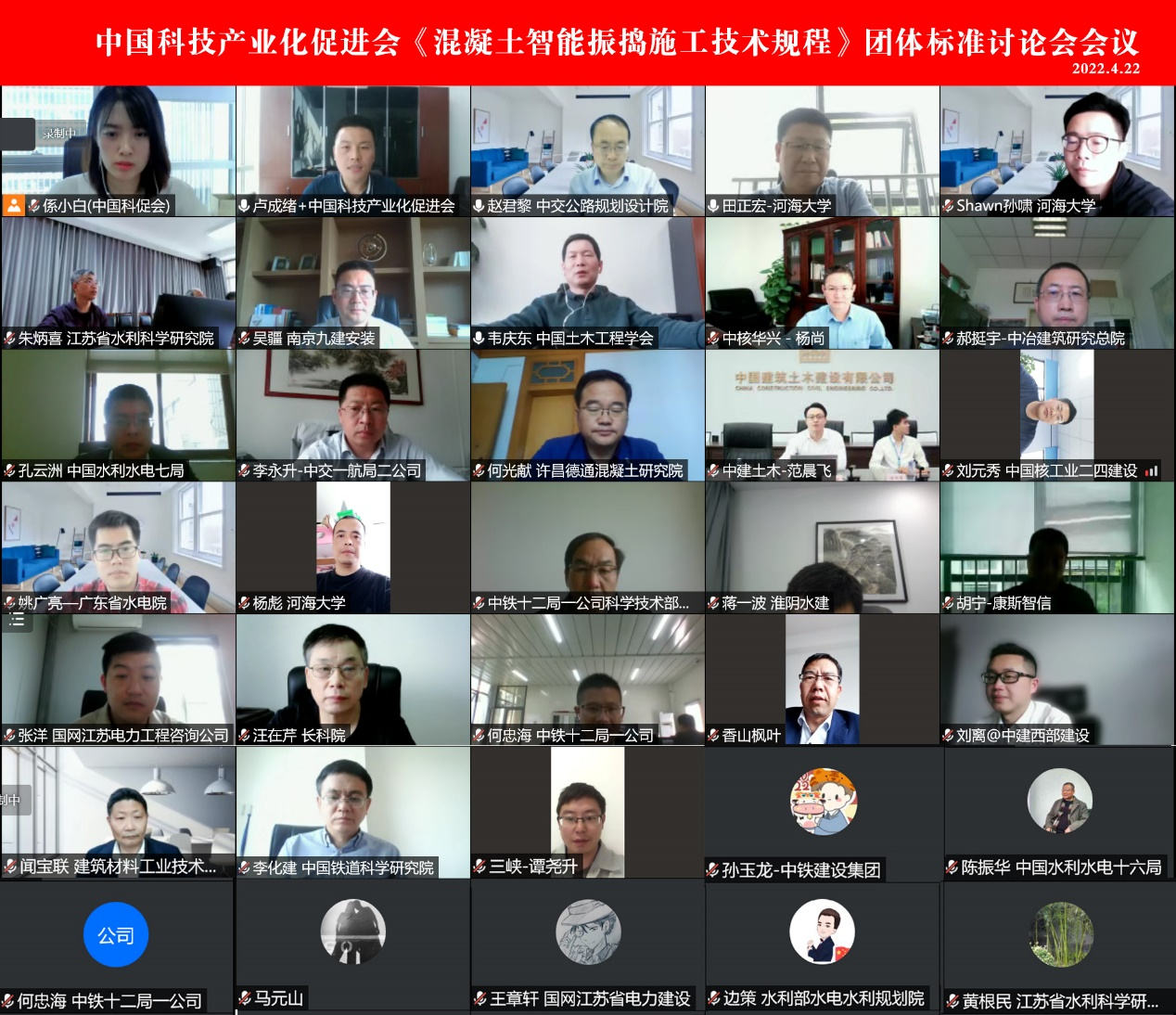 4月22日,由中国科技产业化促进会组织,av影片 与中国水利水电第七工程局有限公司联合起草的《混凝土智能振捣施工技术规程》团体标准(征求意见稿)专家研讨会在线召开。