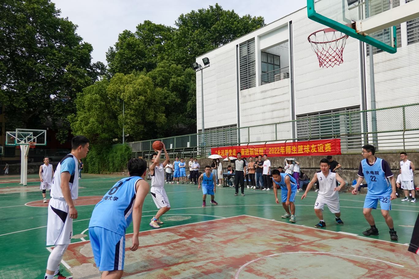 师生支部共建旨在以“联”育人,以“联”聚力,以“联” 促建,建立起师生之间的联建互动网。自2021年5月师生支部共建以来,双方联合策划开展了共诵张闻天家书、“抗美援朝精神”专题党课、水利枢纽研学等系列活动,做到理论同学、组织同建、成效同享。本次篮球友谊赛是支部共建“党建+”模式的有益探索,在促进师生交流互促的同时极大地提升了支部的凝聚力和战斗力。(文:刘畅 图:戴圣、陈思思)