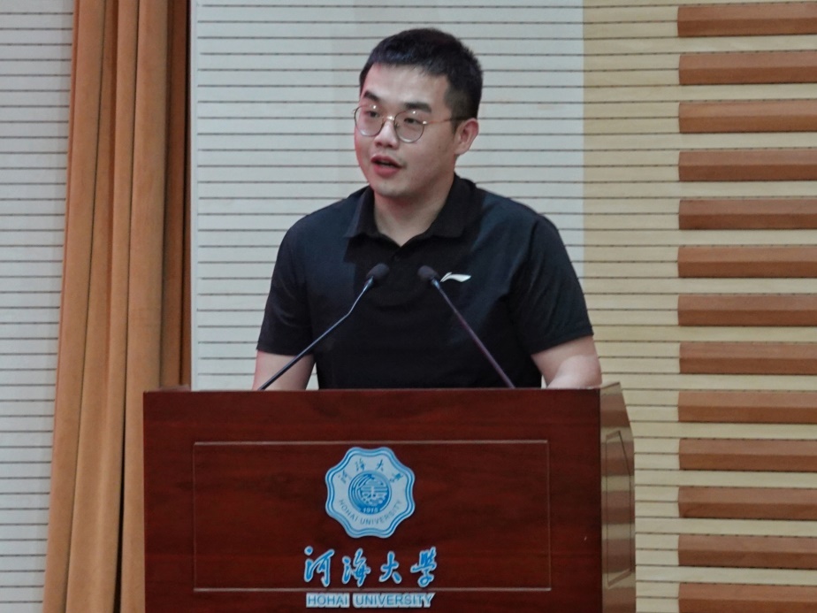 2018级博士研究生李扬涛作为在校研究生代表发言。他结合我国诸多重大水利建设中河海人身影,鼓励新同学秉承艰苦朴素的奋斗品质,实事求是的学术风格,严格要求的教育传统和勇于探索的科研精神,努力成为具有“中国灵魂、全球视野、河海特质”的新时代河海人。
