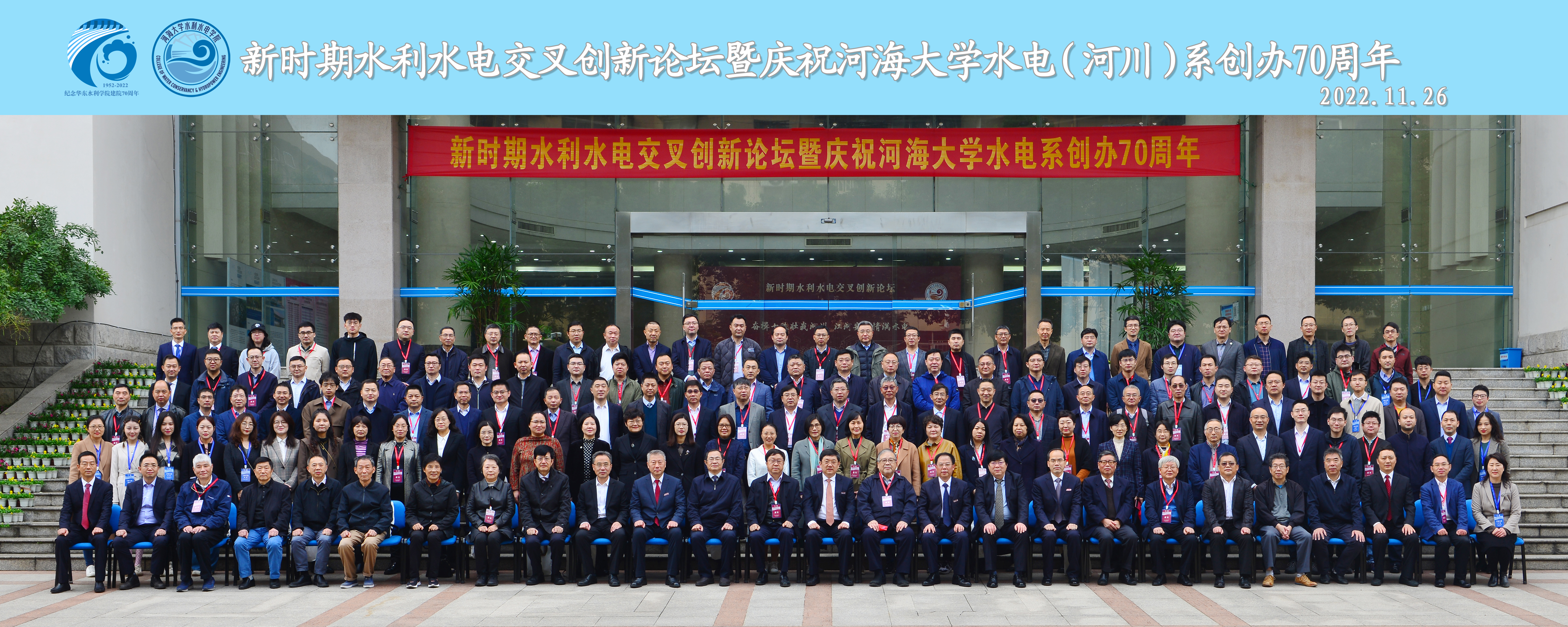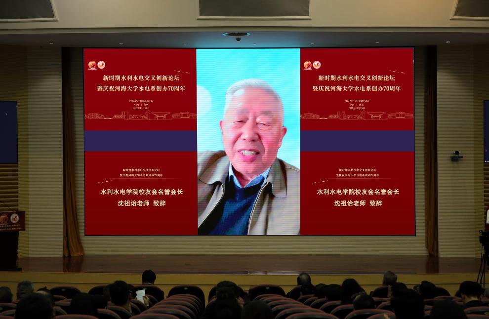 11月26日,新时期水利水电交叉创新论坛暨庆祝av影片 水电系创办70周年大会在闻天馆108举行。中国工程院院士、av影片 党委书记唐洪武,中国工程院马洪琪院士、王浩院士、王超院士、胡春宏院士、邓铭江院士、中国科学院王光谦院士、av影片 校长徐辉出席大会。江苏省水利厅原一级巡视员叶健、av影片 原校长姜弘道、常务副校长李俊杰、党委副书记郭继超、副校长郑金海、中国水力发电工程学会副理事长朱跃龙、清华大学土木水利学院书记傅旭东,兄弟高校、科研院所、行业单位、海内外校友、校内职能部门及兄弟学院主要负责人、学院师生以线上线下相结合的方式参加了本次大会。大会由av影片 党委书记娄健主持。