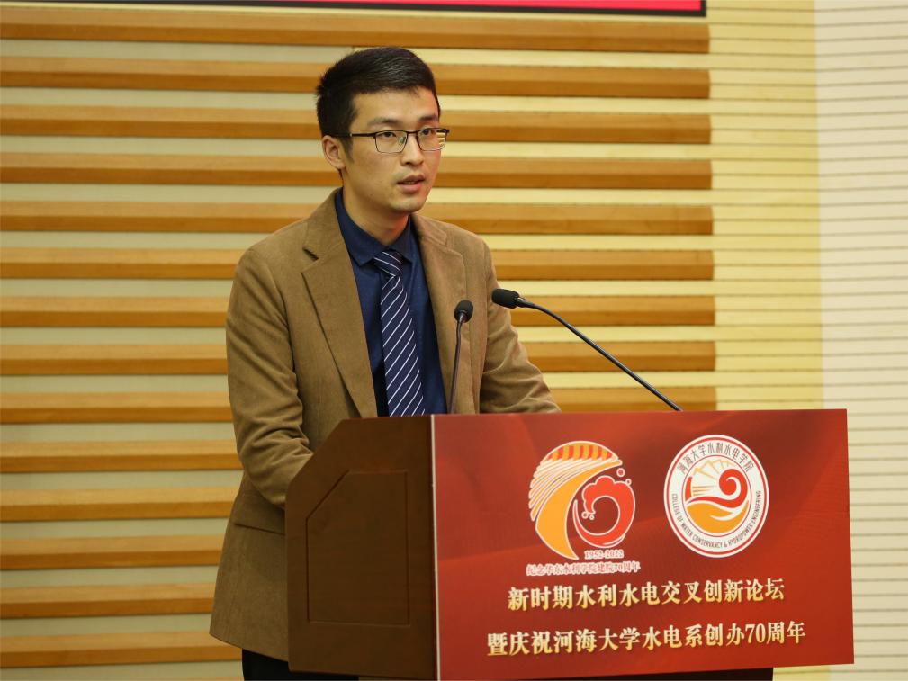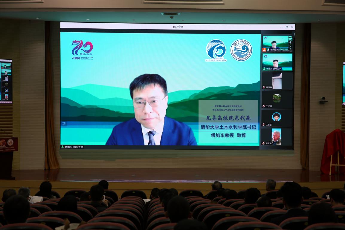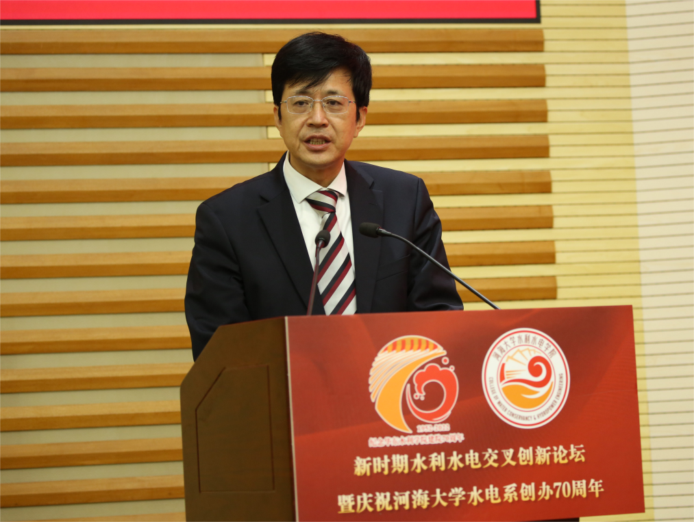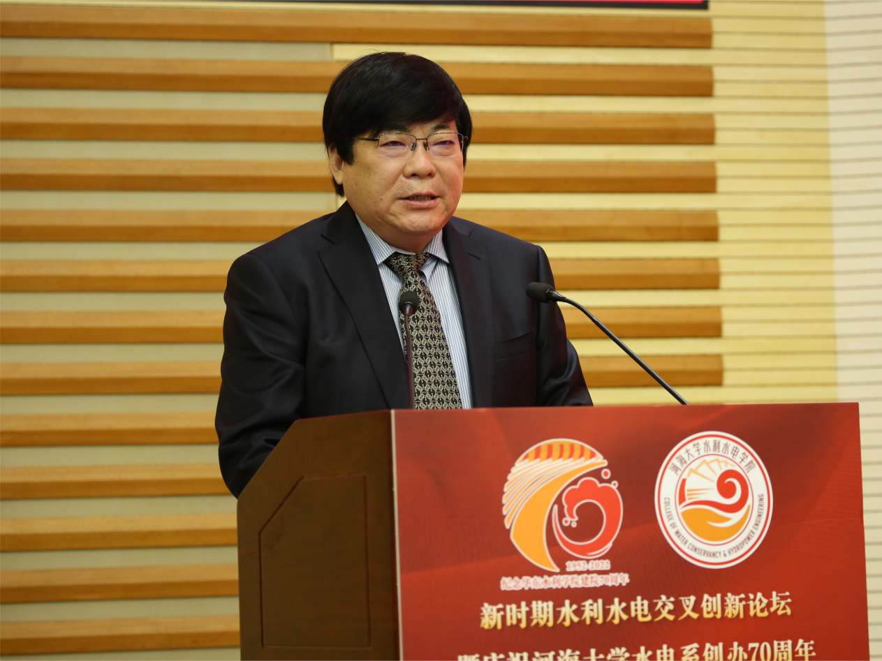 唐洪武代表学校向线上线下的各位嘉宾表示热烈欢迎。他指出,水电系从建系初期艰苦创业,到河川系时期开拓奋进,从改革开放以来提高发展,再到进入新时代以后创新引领,水电系作为一个团结奋斗的集体,完成了从初创到逐渐成长壮大的蜕变,在多个领域取得全球一流科研成果,实现国际“并跑”,甚至“领跑”。七十年来,学院始终站在学校办学的第一梯队,始终是学校发展的一张王牌,为推动学校“双一流”建设和服务国家水利事业发展作出了重要贡献。他希望,学院要以建系七十年为新的起点,在更广阔的历史舞台上发出水电声音,作出水电表率,成就水电事业。一要担当使命,坚持为党育人、为国育才,始终将家国情怀牢记心间,以深沉热爱矢志奋斗,培养能够担当民族复兴大任的时代新人。二要持之以恒加强新时代教师队伍建设,引导教师成为学生为学、为事、为人的“大先生”,注重教学科研育人并重,做到出人才、出成果、出经验、出示范。三要集聚力量引领水利工程学科创新发展,始终锚定“四个面向”,塑造创新创造新动能,挖掘水利学科发展新优势,努力将学院建设成为世界顶尖的水利人才培养标杆和科技创新旗帜。