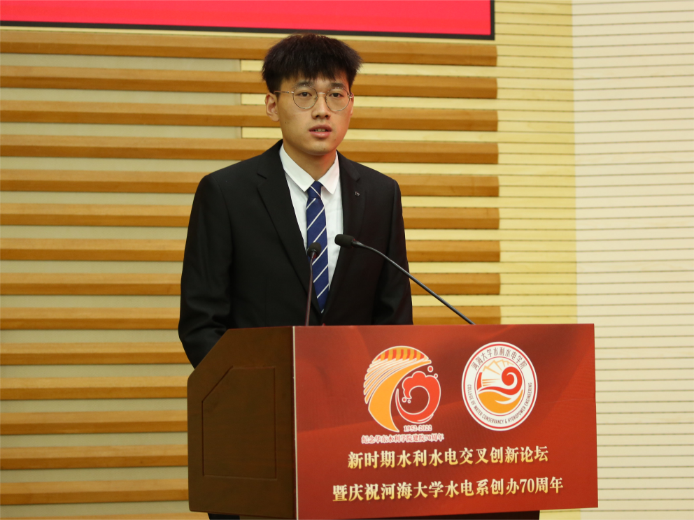 国电南瑞集团有限公司一级职员邵宜祥、水电院袁赛瑜教授、2019级博士研究生夏定康作为校友代表发言。
