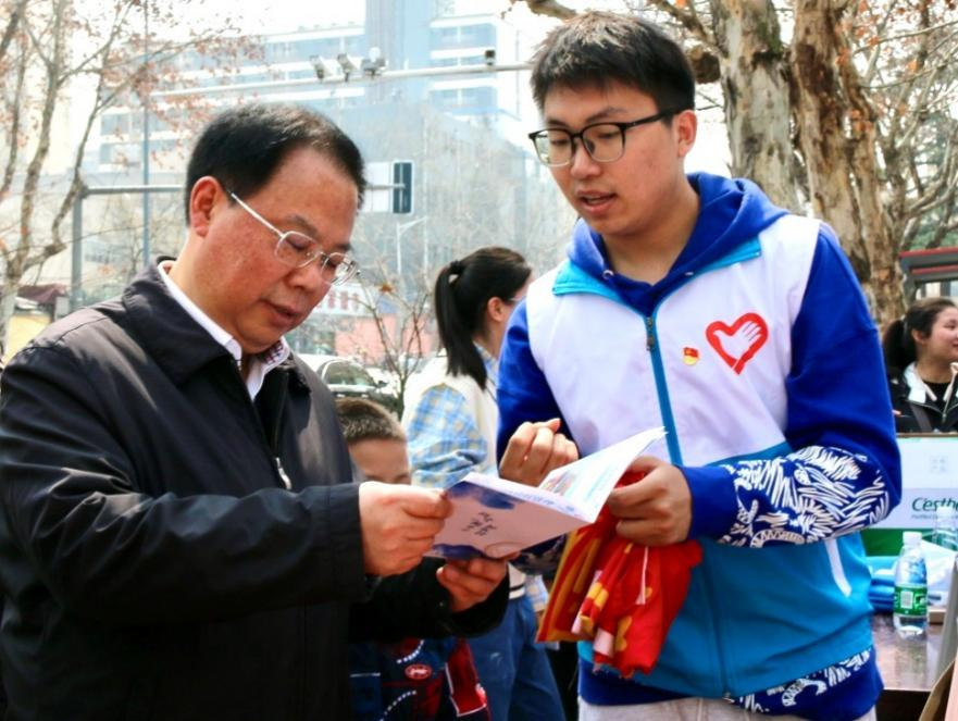现场,校长徐辉、校党委副书记郭继超一行来到av影片 志愿者中间,在志愿者的讲解下,详细了解了av影片 “河宁一起知水行”志愿服务项目的进展和后续活动,提出了诸多的宝贵建议,并对志愿者们讲奉献、做表率、心怀他人的服务行动和志愿精神提出了表扬和肯定。