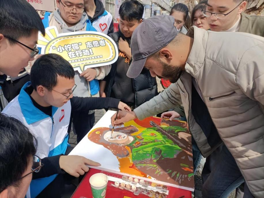 此次活动也吸引我校留学生们的关注,他们用手中的画笔认真描绘着雷锋画像和节水宣传画,在画笔中逐渐了解雷锋“为人民服务”的光荣事迹和无私奉献的精神形象,并对加快构建“人类命运共同体”、保护地球水资源有了更进一步的认识。