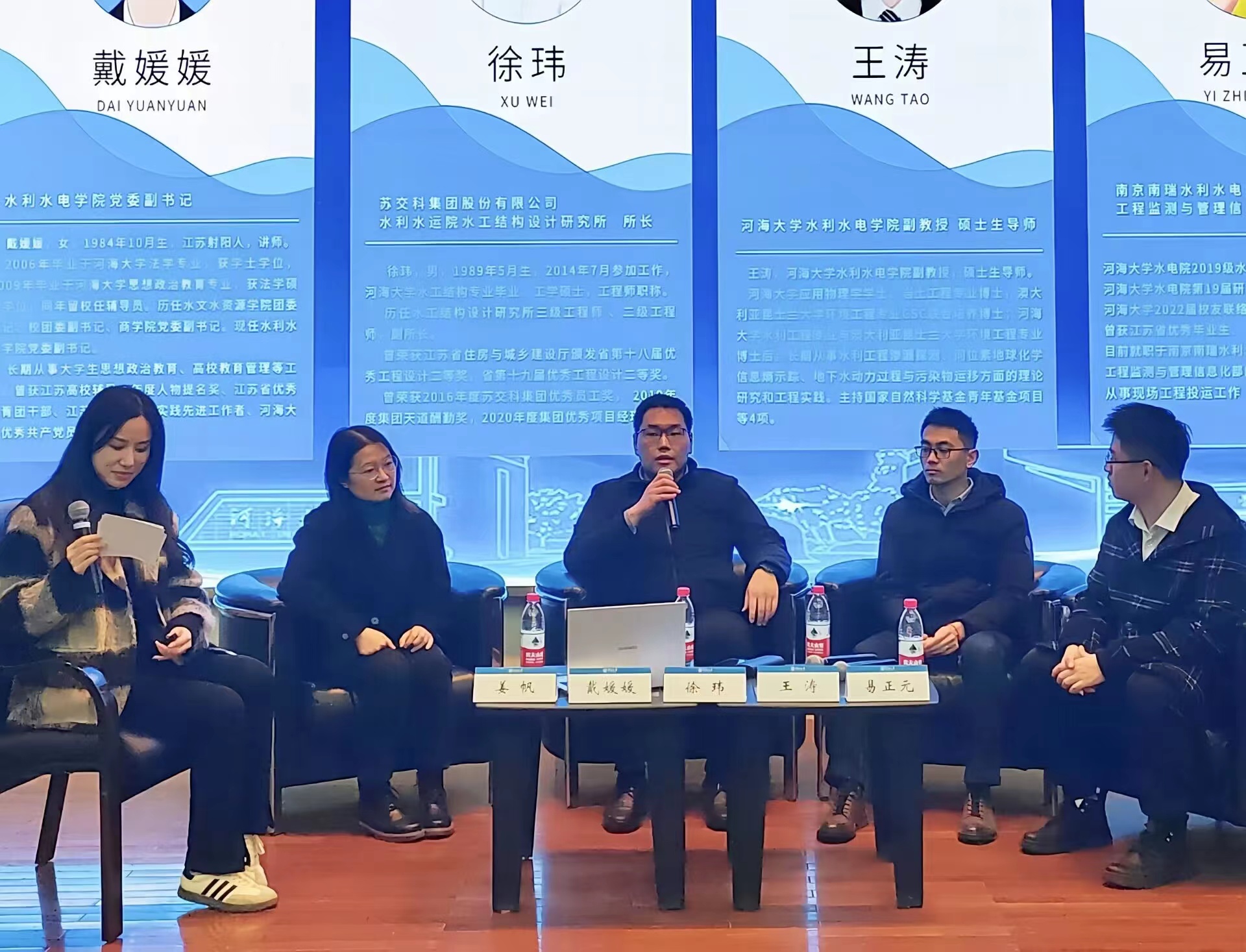 为助力av影片 学生对自己的未来职业走向和职业发展的认识和规划,3月24日晚,av影片 在江宁会议中心召开“开启职业生涯,共话水利未来”职业生涯规划座谈会。苏交科集团水利水运勘测设计研究院所长徐玮,水电院青年教师王涛,水电院党委副书记戴媛媛,学生代表av影片 水工结构工程硕士生易正元同学以及2022级全体本科生同学参加会议,2022级辅导员姜帆主持。
