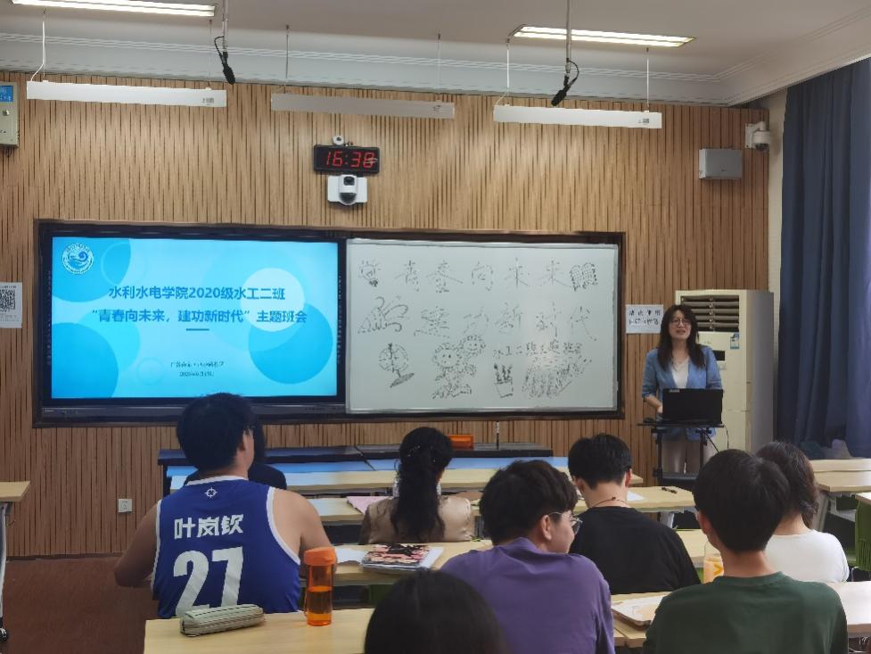 王媛向同学们表示了亲切的问候和诚挚的祝福,对此次班会的开展表示肯定,对学生长期以来的学习和生活表示深切的关怀,她寄语水工二班的同学们,一要志存高远,向着目标不断迭代寻优。二要脚踏实地,做好本职工作,努力学习。三要抓住重点,抓住关键,了解自身强项与弱项,加强自律。四要守住底线,建立底线,做到有所为,有所不为。天行健,君子以自强不息,王院长鼓励并祝福同学们成为有高度、有广度、有厚度、有深度的人。