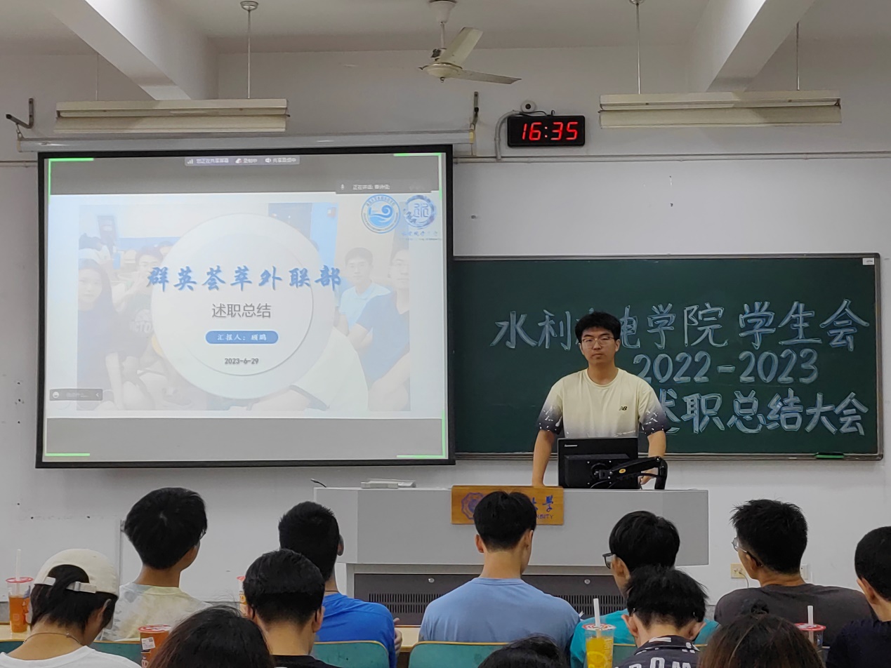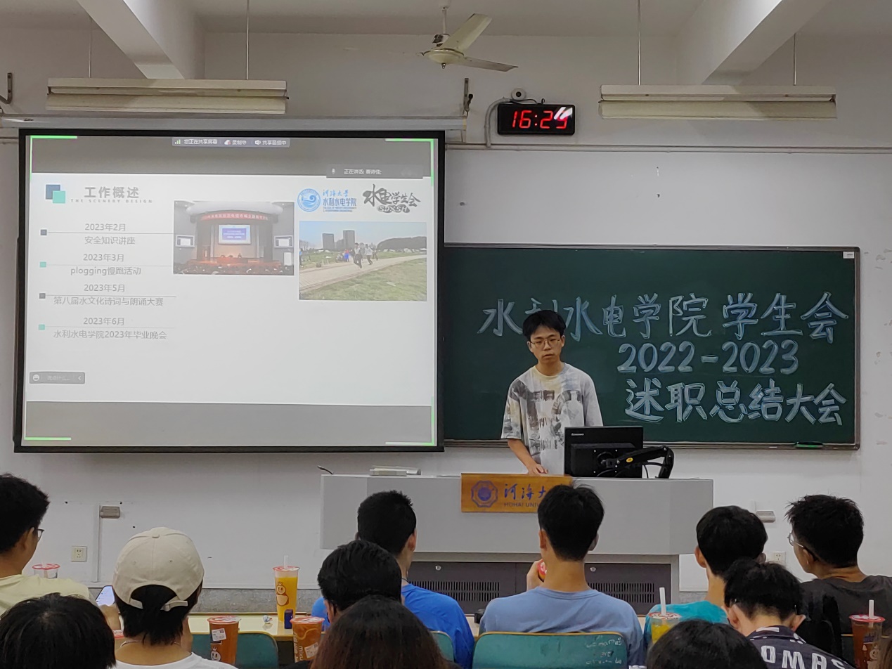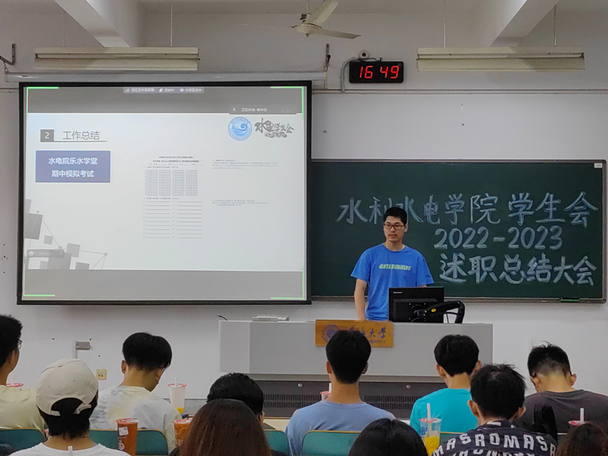 学习部徐祺皓同学介绍了学习部在“刻苦,严谨,求实,创新”的宗旨下开展“乐水学堂”模拟考和学习经验交流会,为水电学子们搭建了思想碰撞和学习交流的平台。