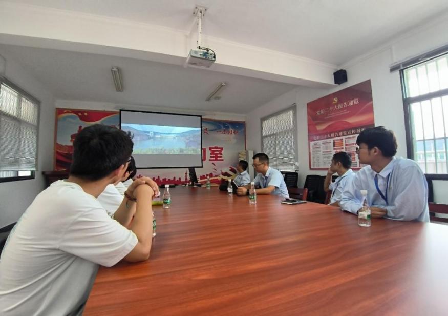 景洪水电站校友杨文云向团队成员介绍华能景洪水电站的发展历程。在介绍中,实践团成员们了解了华能景洪水电站的发展历程、现状以及华能景洪水电站近年来对于澜沧江水生态治理所做出的突出贡献。