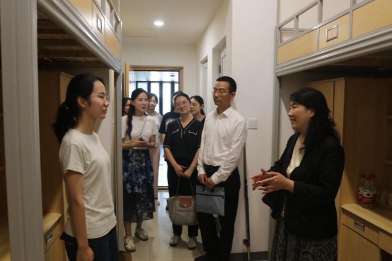 学院领导班子在走访学生宿舍后继续调研金坛校区办公室、会议室等院系工作场所,为日后顺利开展科研、教学、行政工作打下基础。
